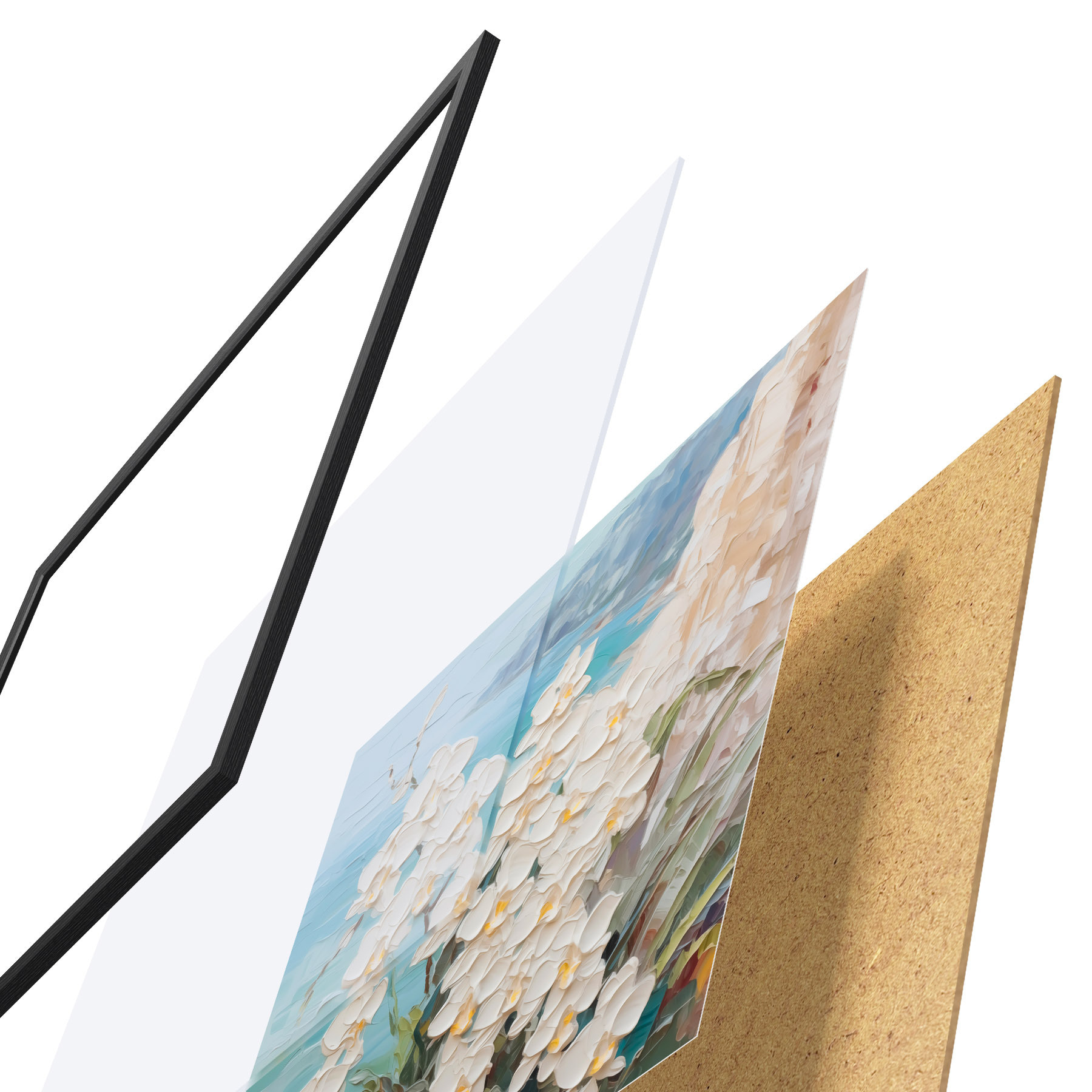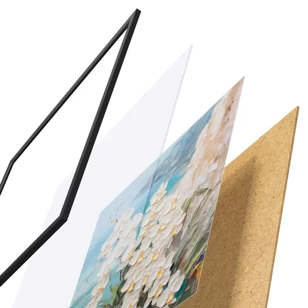 Le poster se compose d'un cadre, d'un plexiglas, d'une image imprimée et d'un support en aggloméré. Le poster peut être immédiatement accroché au mur grâce aux fixations au dos.