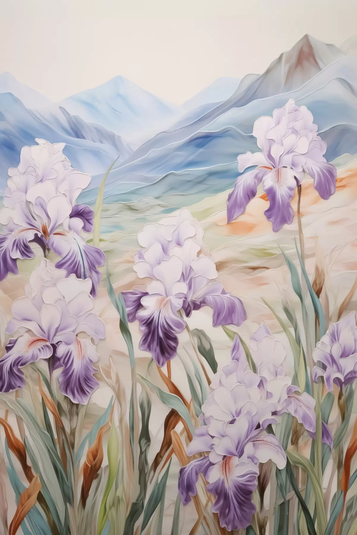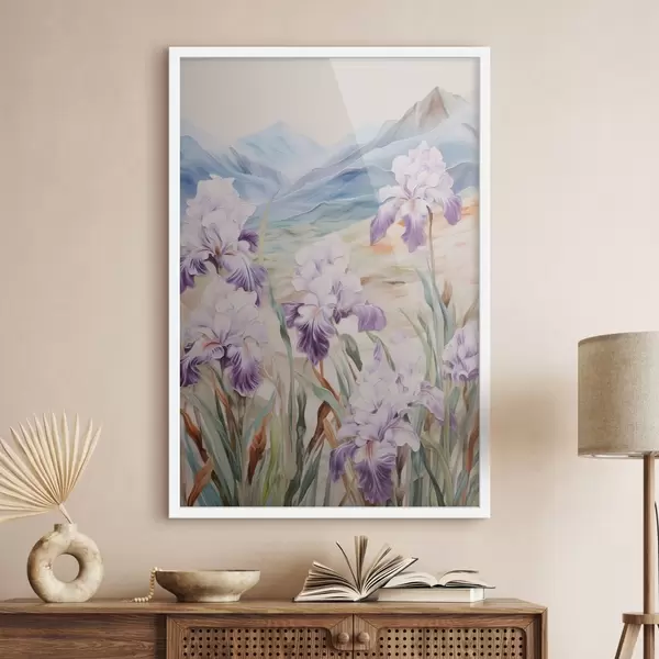 Affiche Iris sur fond de montagnes f44599