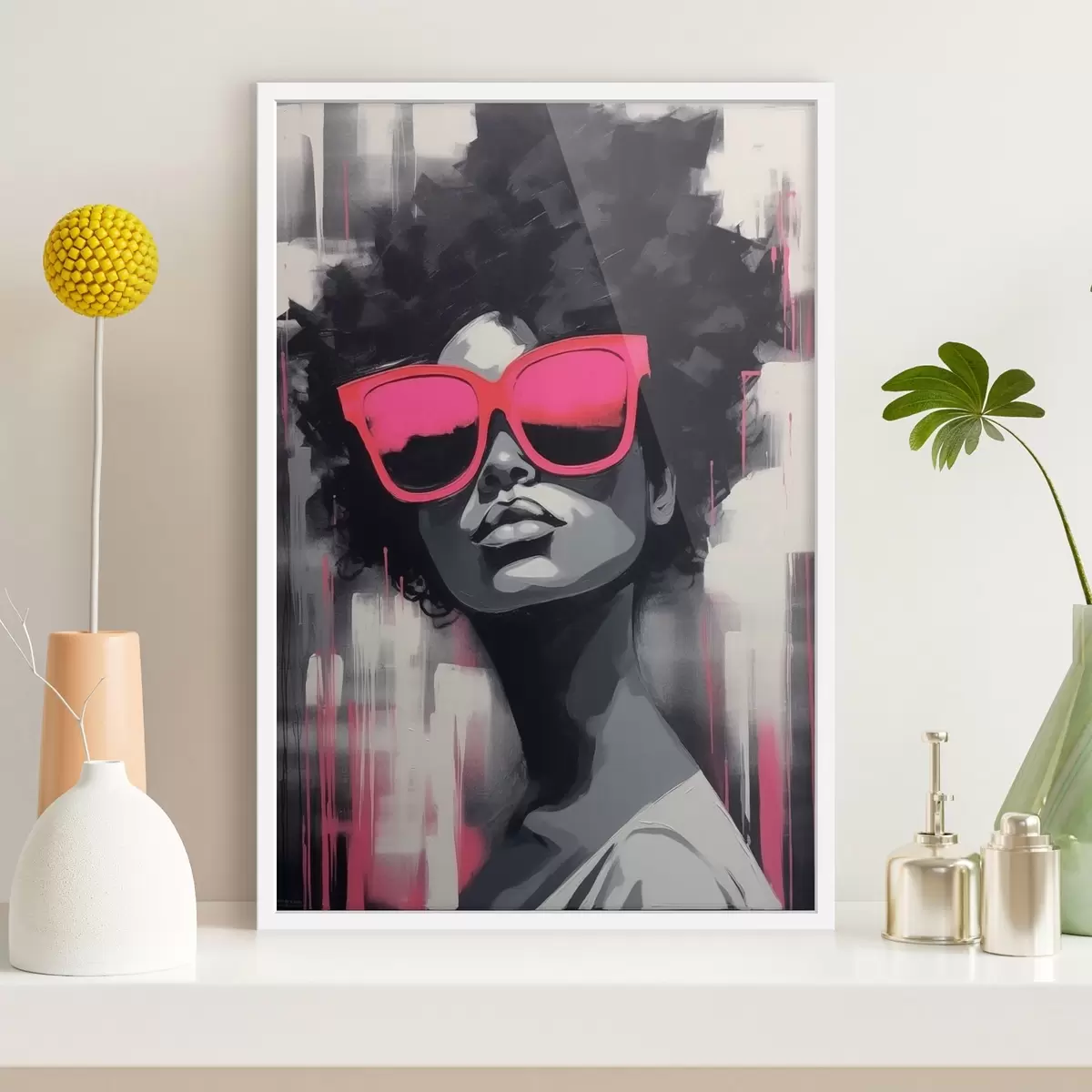Affiche Fille avec des lunettes roses, style noir et blanc Non f44624