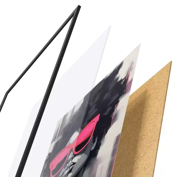 Le poster se compose d'un cadre, d'un plexiglas, d'une image imprimée et d'un support en aggloméré. Le poster peut être immédiatement accroché au mur grâce aux fixations au dos.