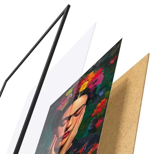 Le poster se compose d'un cadre, d'un plexiglas, d'une image imprimée et d'un support en aggloméré. Le poster peut être immédiatement accroché au mur grâce aux fixations au dos.