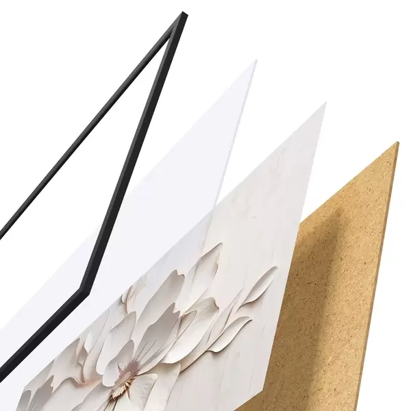 Le poster se compose d'un cadre, d'un plexiglas, d'une image imprimée et d'un support en aggloméré. Le poster peut être immédiatement accroché au mur grâce aux fixations au dos.