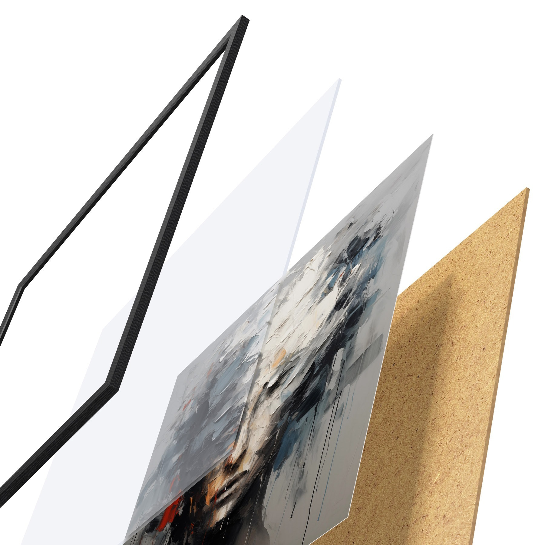 Le poster se compose d'un cadre, d'un plexiglas, d'une image imprimée et d'un support en aggloméré. Le poster peut être immédiatement accroché au mur grâce aux fixations au dos.