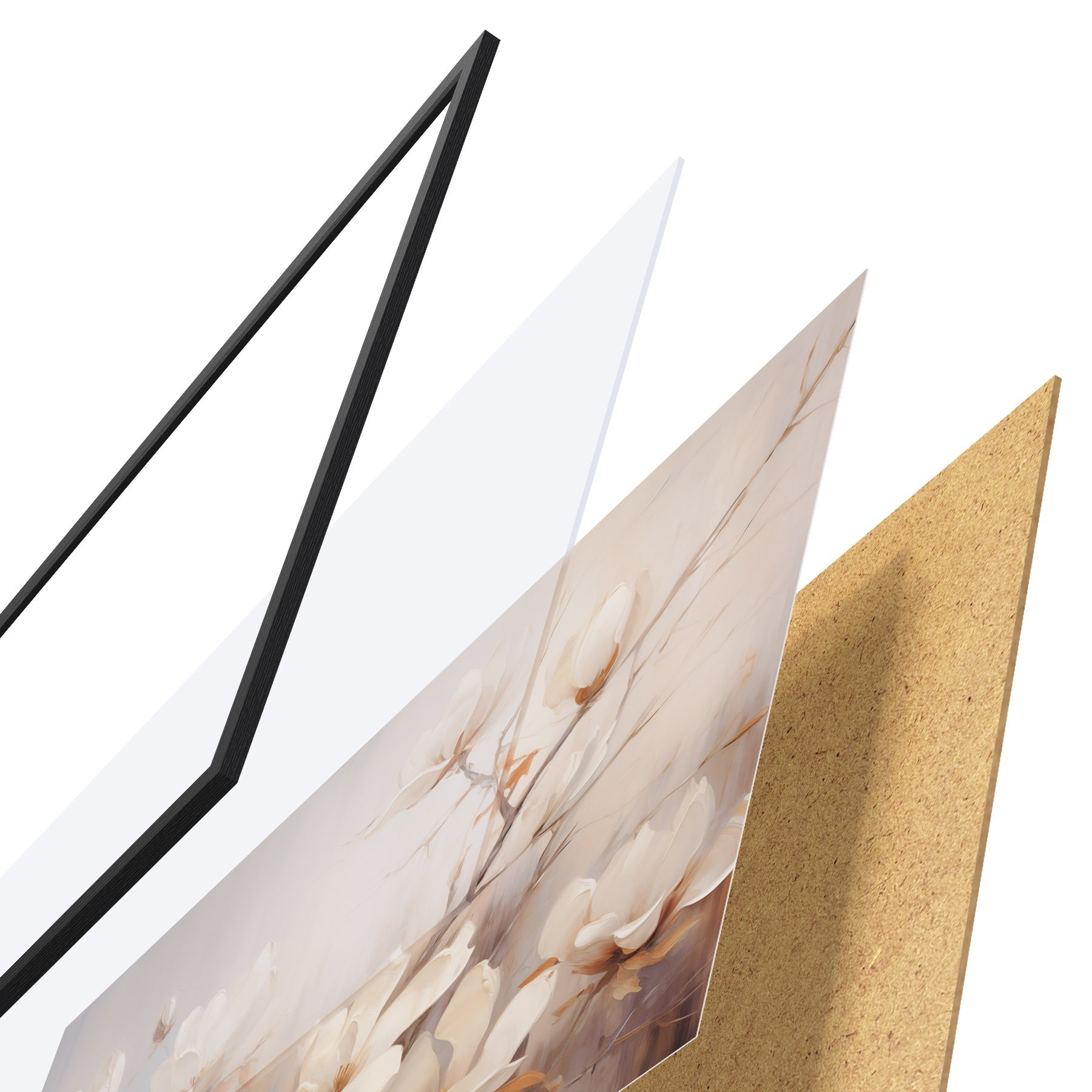 Le poster se compose d'un cadre, d'un plexiglas, d'une image imprimée et d'un support en aggloméré. Le poster peut être immédiatement accroché au mur grâce aux fixations au dos.
