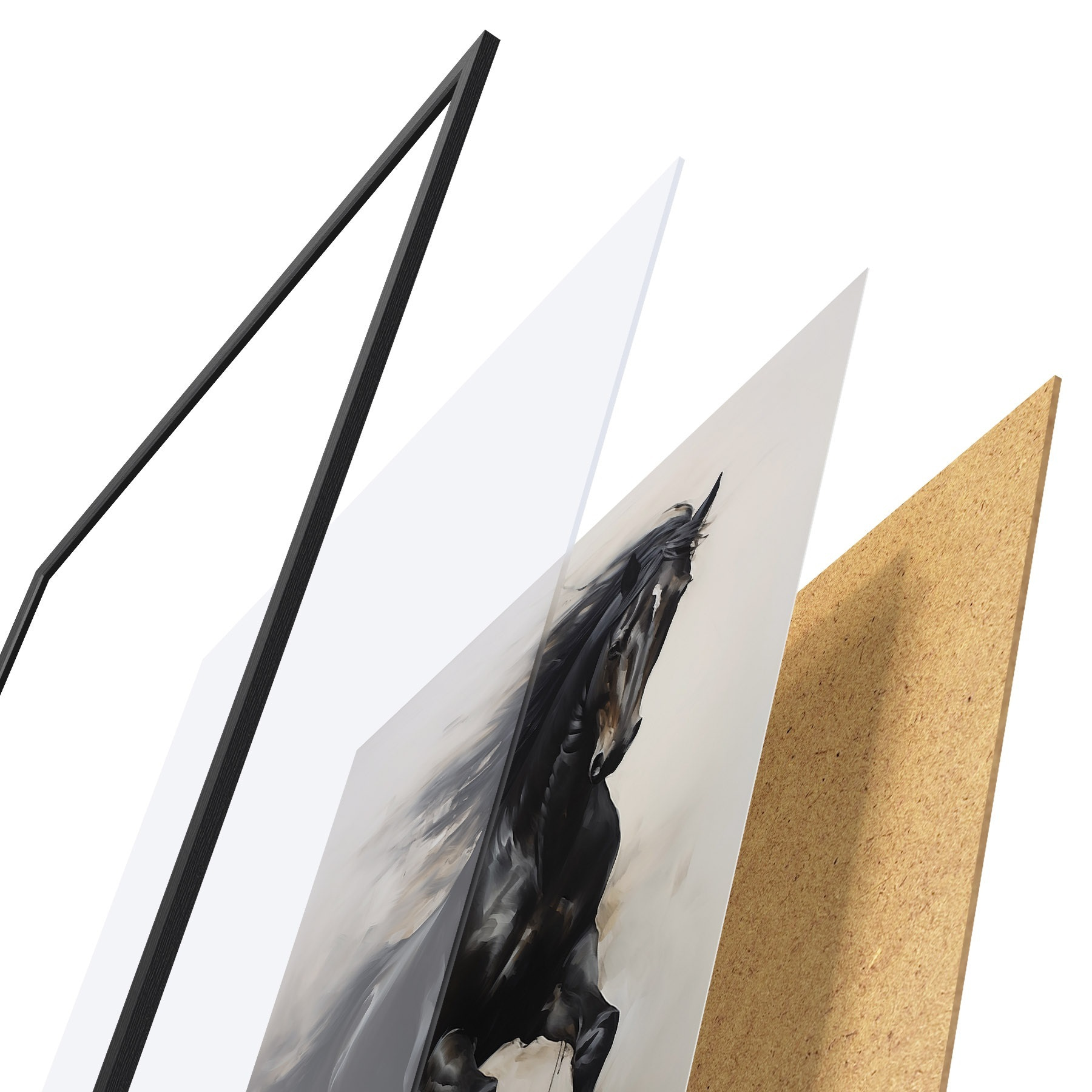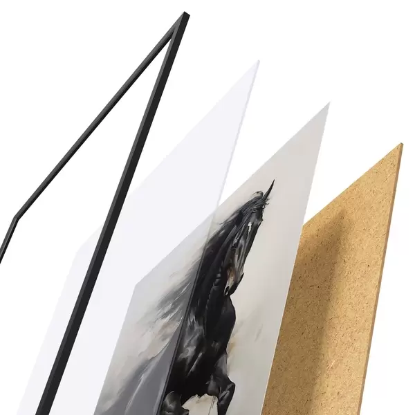 Le poster se compose d'un cadre, d'un plexiglas, d'une image imprimée et d'un support en aggloméré. Le poster peut être immédiatement accroché au mur grâce aux fixations au dos.