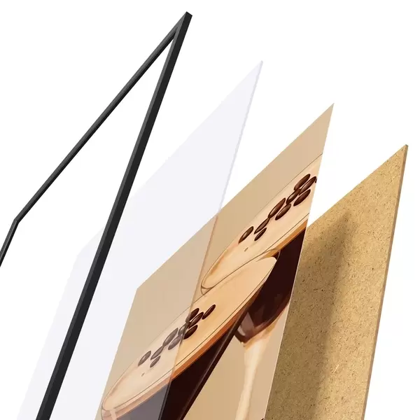 Le poster se compose d'un cadre, d'un plexiglas, d'une image imprimée et d'un support en aggloméré. Le poster peut être immédiatement accroché au mur grâce aux fixations au dos.