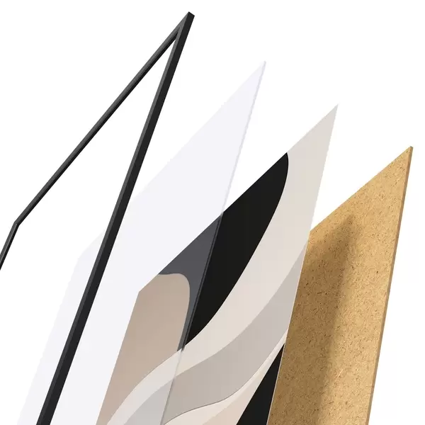 Le poster se compose d'un cadre, d'un plexiglas, d'une image imprimée et d'un support en aggloméré. Le poster peut être immédiatement accroché au mur grâce aux fixations au dos.