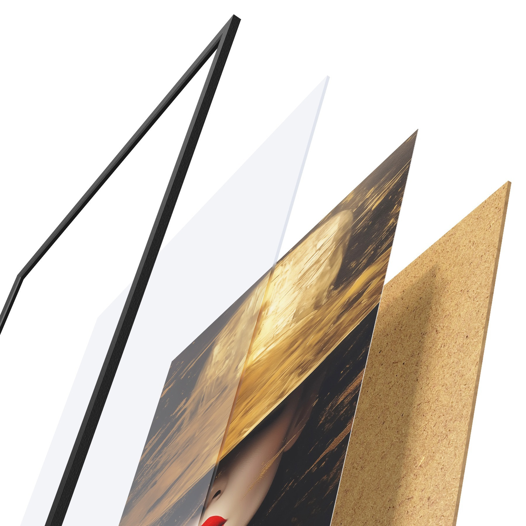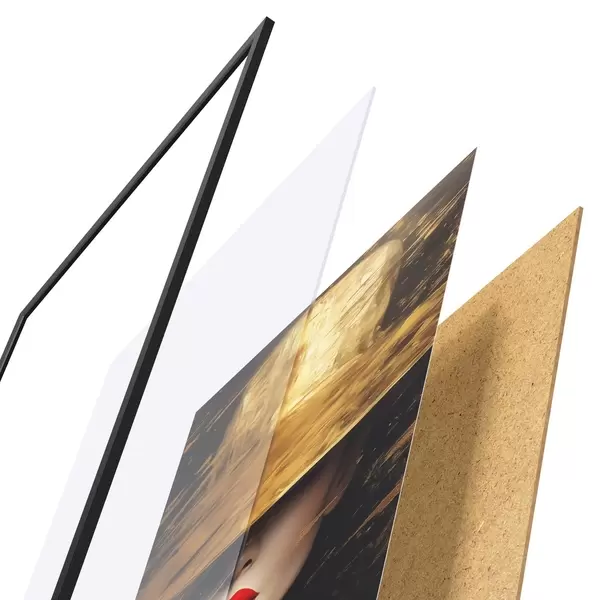 Le poster se compose d'un cadre, d'un plexiglas, d'une image imprimée et d'un support en aggloméré. Le poster peut être immédiatement accroché au mur grâce aux fixations au dos.