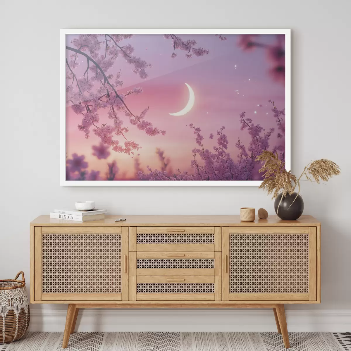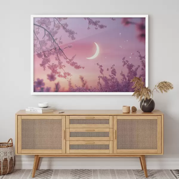 Affiche Fleur de cerisier, ciel rose avec lune brillante, réalisme Non f44715