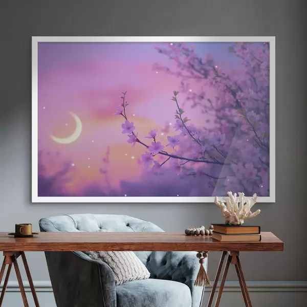 Affiche Ciel violet avec lune et cerisiers Non f44717