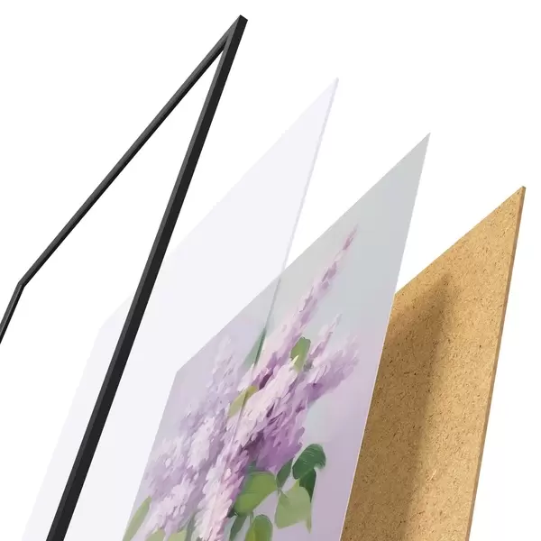 Le poster se compose d'un cadre, d'un plexiglas, d'une image imprimée et d'un support en aggloméré. Le poster peut être immédiatement accroché au mur grâce aux fixations au dos.