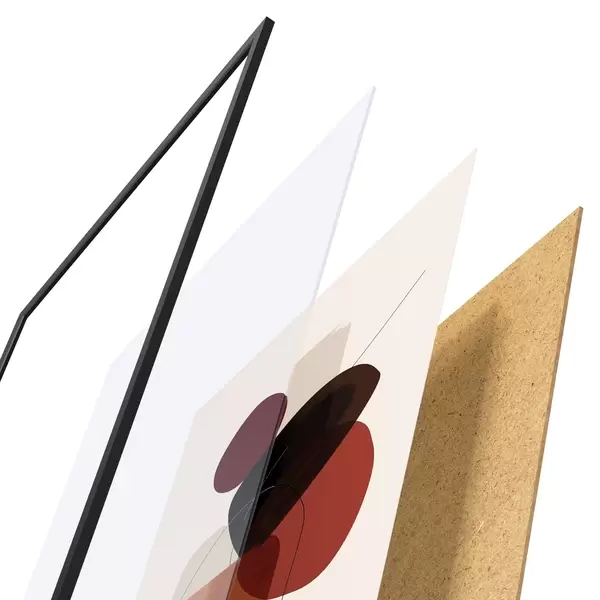 Le poster se compose d'un cadre, d'un plexiglas, d'une image imprimée et d'un support en aggloméré. Le poster peut être immédiatement accroché au mur grâce aux fixations au dos.