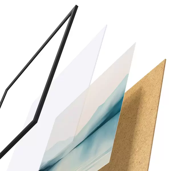 Le poster se compose d'un cadre, d'un plexiglas, d'une image imprimée et d'un support en aggloméré. Le poster peut être immédiatement accroché au mur grâce aux fixations au dos.