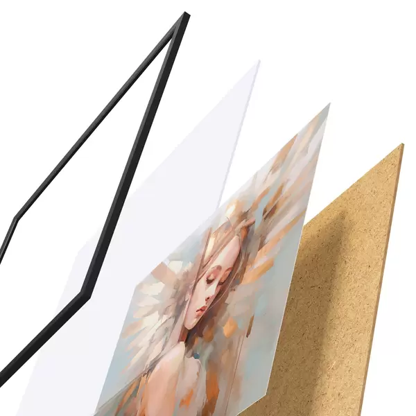 Le poster se compose d'un cadre, d'un plexiglas, d'une image imprimée et d'un support en aggloméré. Le poster peut être immédiatement accroché au mur grâce aux fixations au dos.