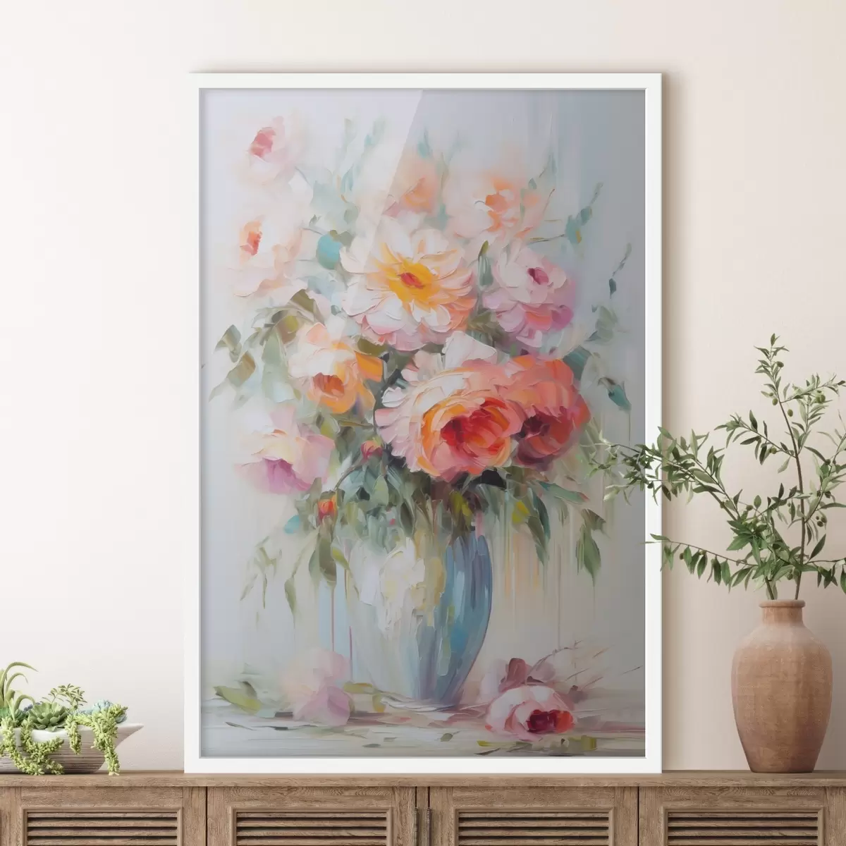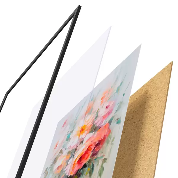 Le poster se compose d'un cadre, d'un plexiglas, d'une image imprimée et d'un support en aggloméré. Le poster peut être immédiatement accroché au mur grâce aux fixations au dos.