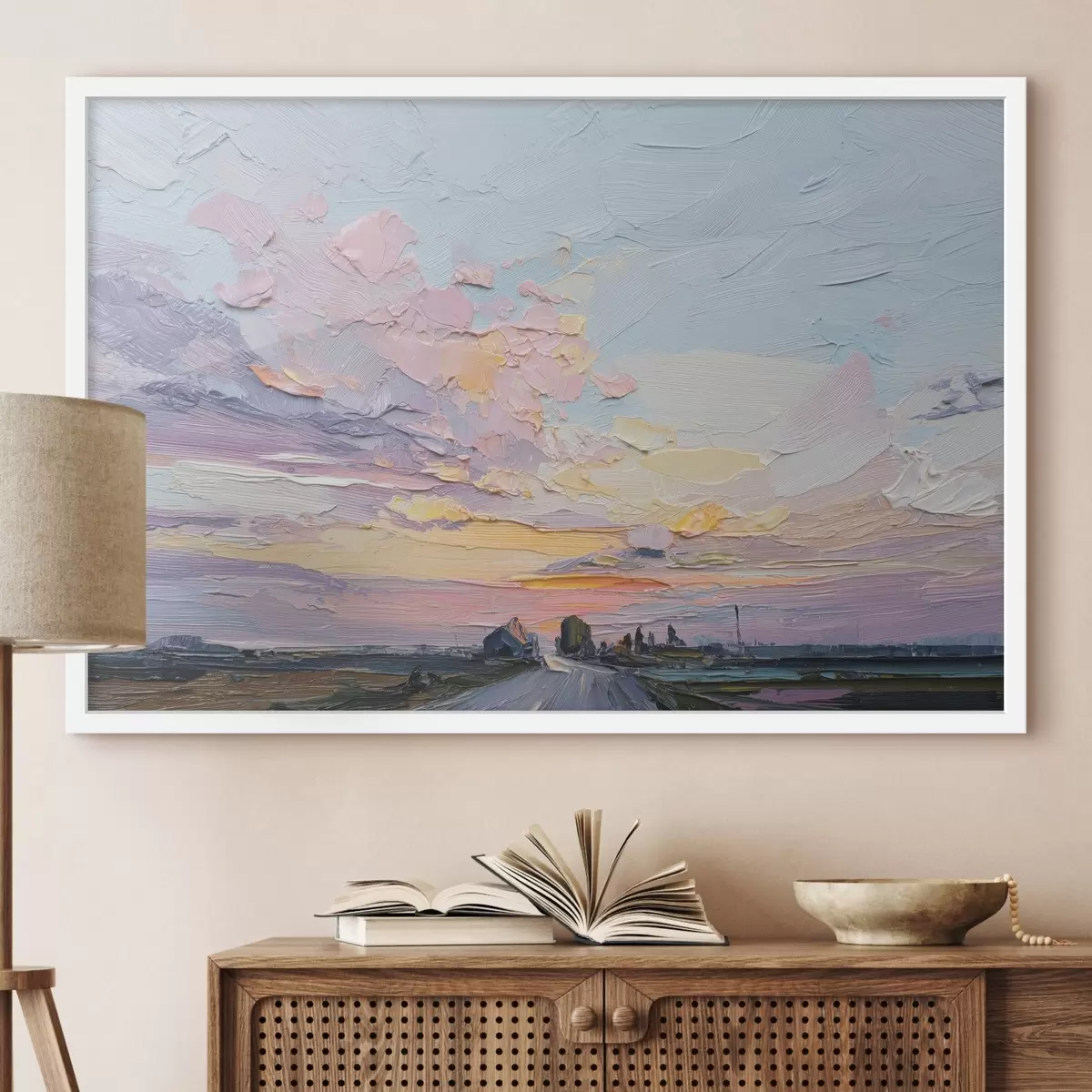 Affiche Paysages de campagne à l'huile, coucher de soleil f44794