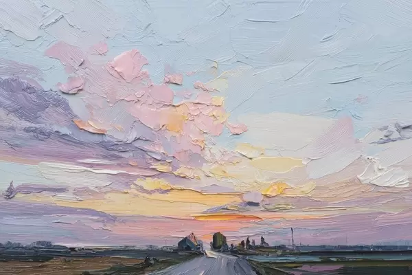 Affiche Paysages de campagne à l'huile, coucher de soleil f44794