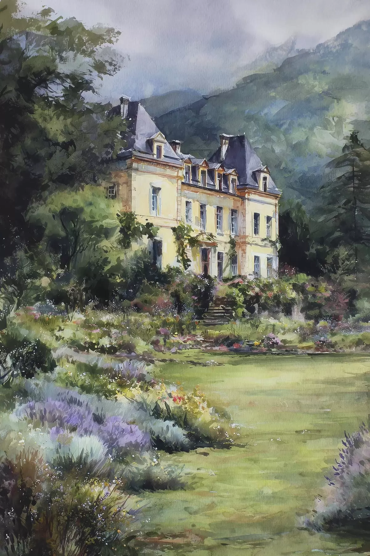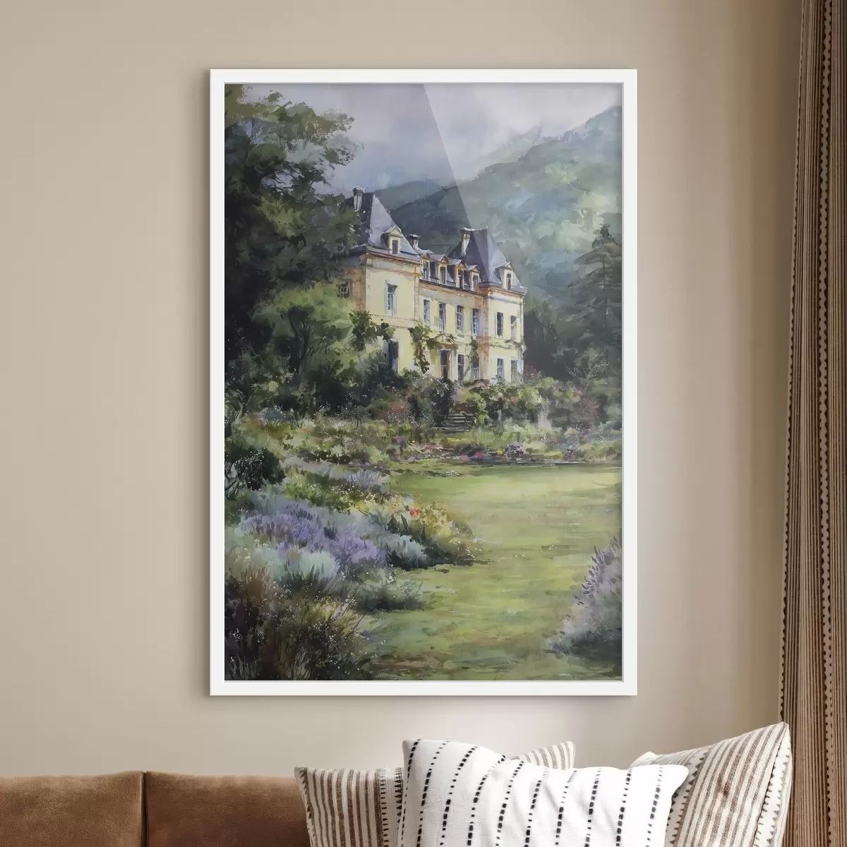 Affiche Château français entouré d'un jardin de lavande Non f44797