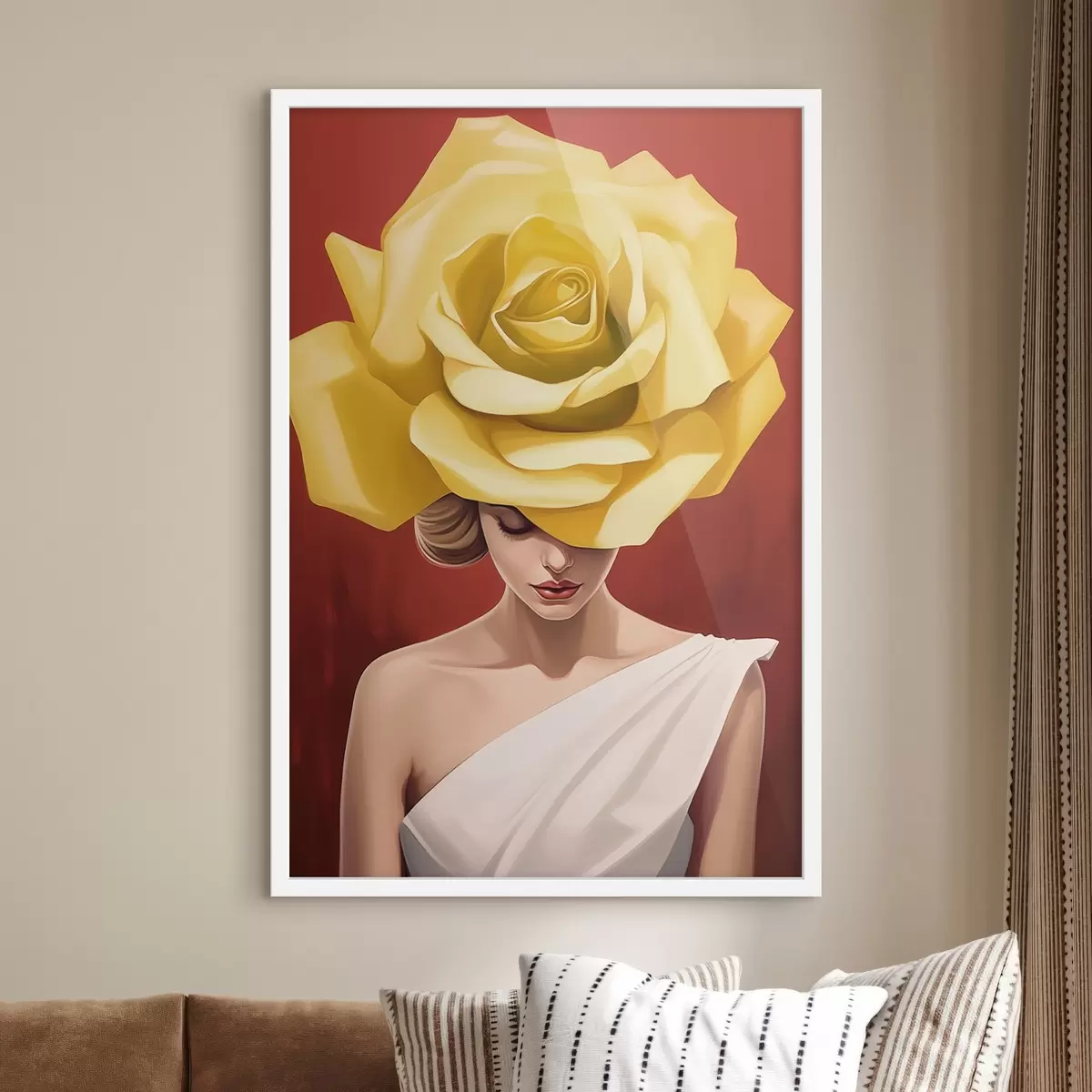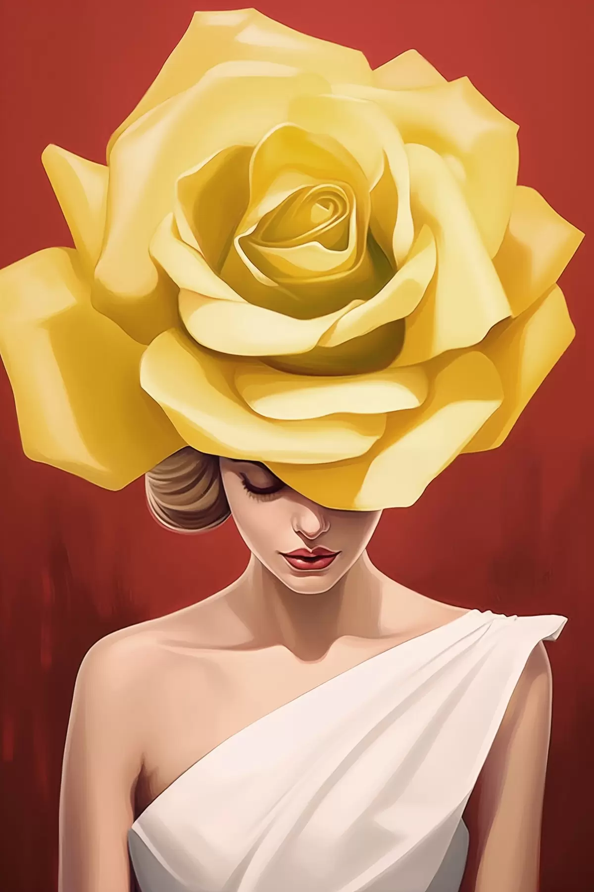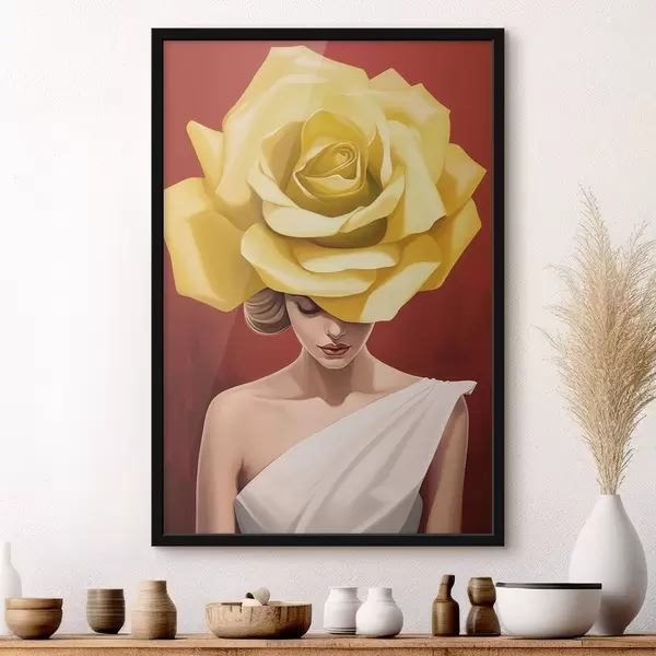Affiche Femme avec un chapeau rose jaune Non f44800