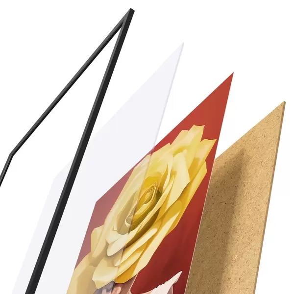 Le poster se compose d'un cadre, d'un plexiglas, d'une image imprimée et d'un support en aggloméré. Le poster peut être immédiatement accroché au mur grâce aux fixations au dos.