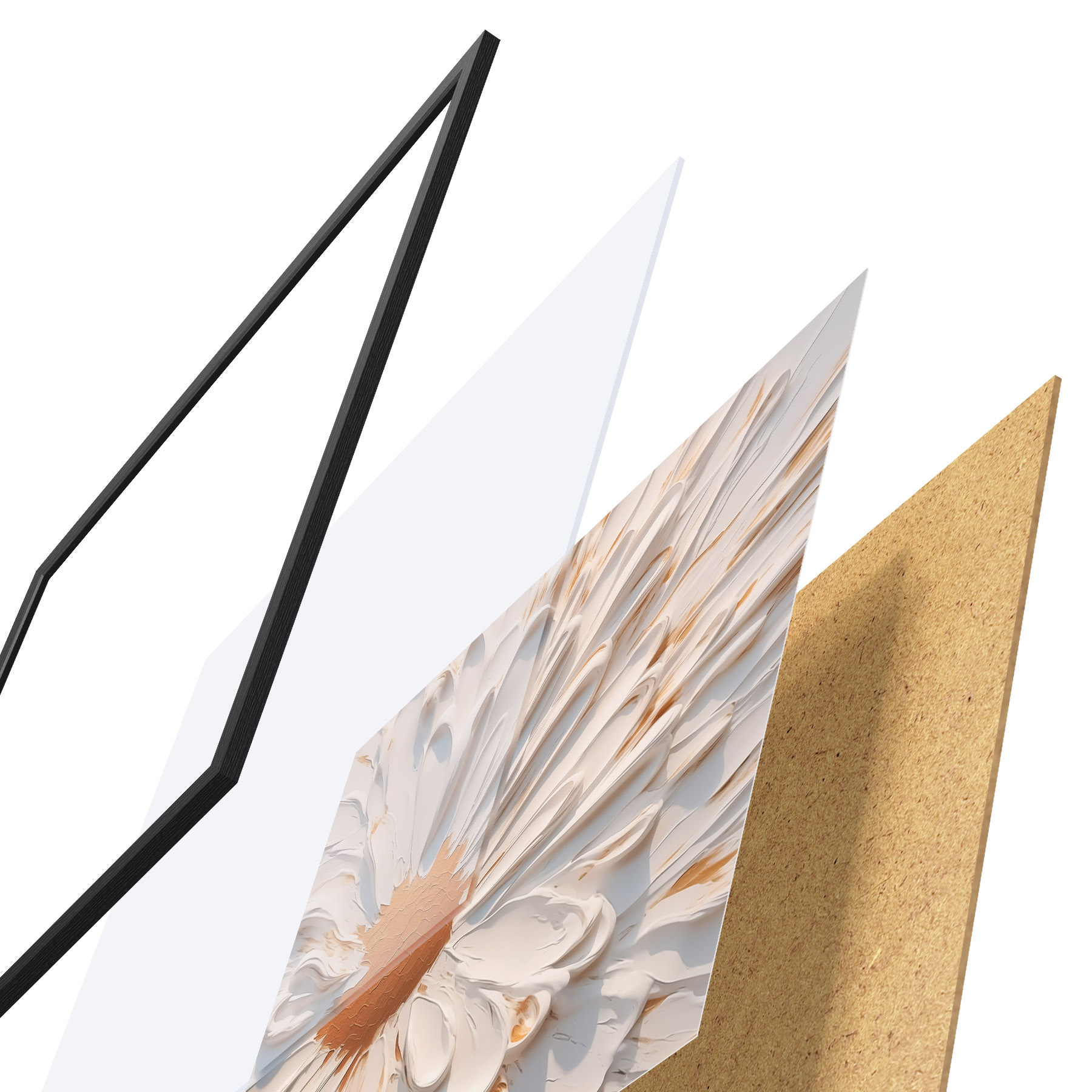 Le poster se compose d'un cadre, d'un plexiglas, d'une image imprimée et d'un support en aggloméré. Le poster peut être immédiatement accroché au mur grâce aux fixations au dos.
