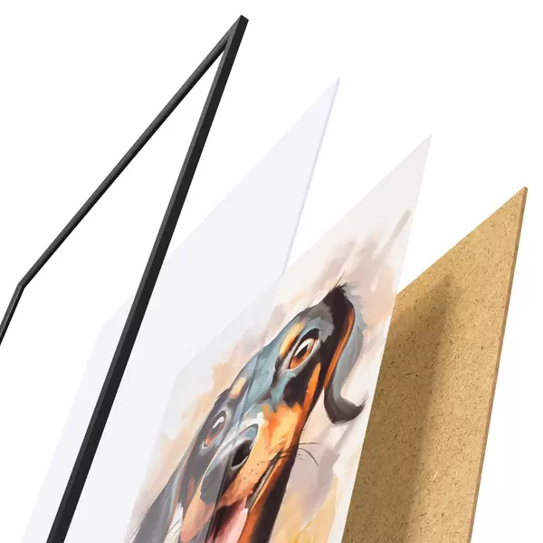 Le poster se compose d'un cadre, d'un plexiglas, d'une image imprimée et d'un support en aggloméré. Le poster peut être immédiatement accroché au mur grâce aux fixations au dos.