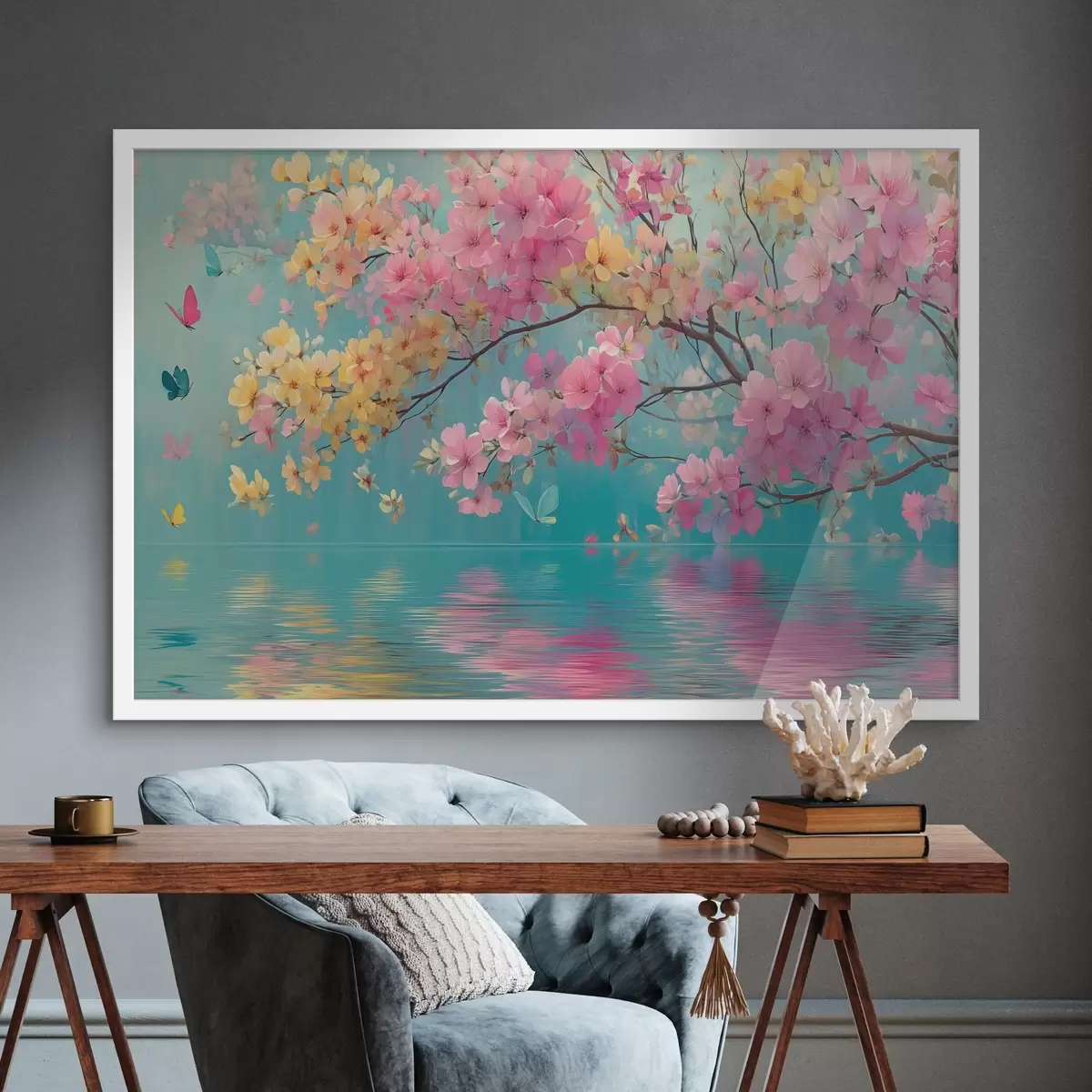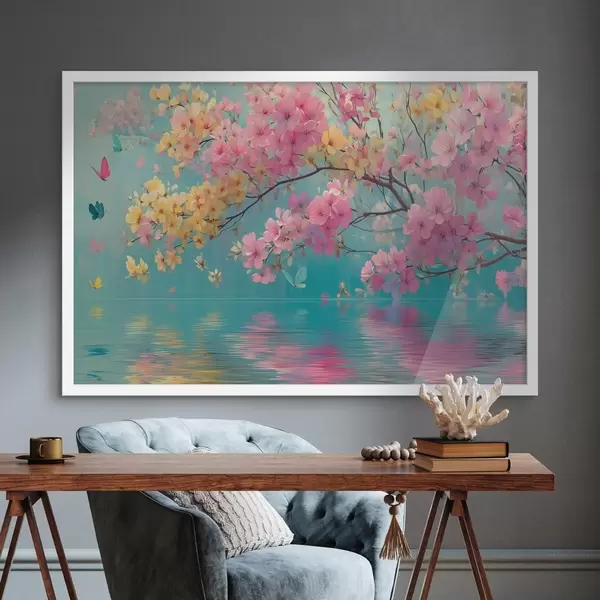 Affiche Branche fleurie sur l'eau en style aquarelle f44844