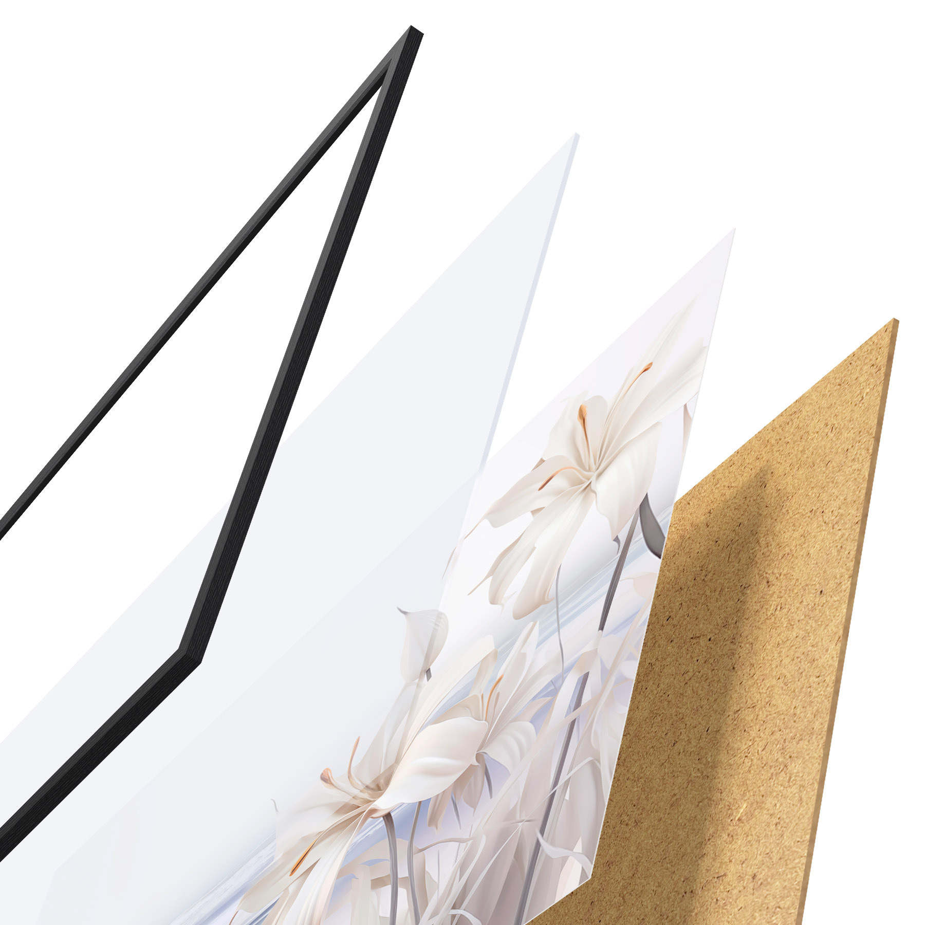 Le poster se compose d'un cadre, d'un plexiglas, d'une image imprimée et d'un support en aggloméré. Le poster peut être immédiatement accroché au mur grâce aux fixations au dos.