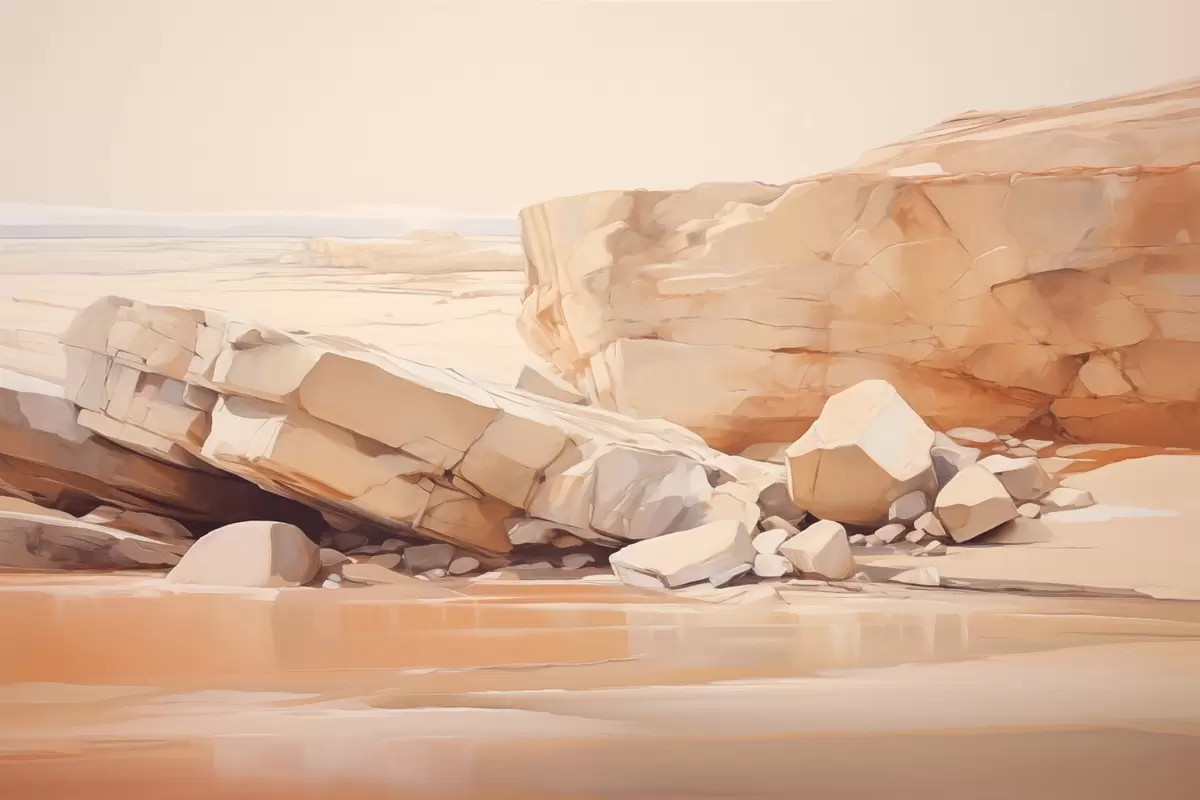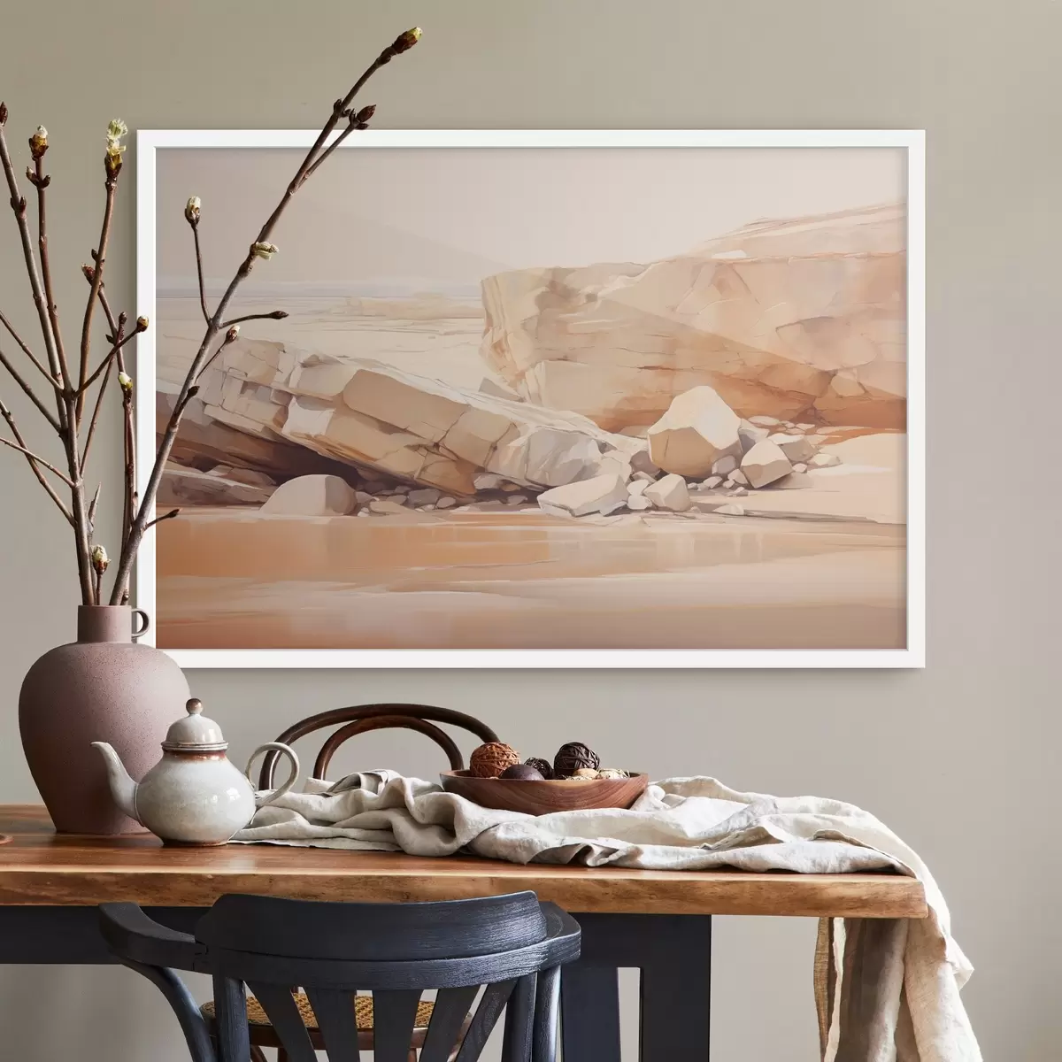 Affiche Paysage minimaliste de plage rocheuse avec de grands rochers marron clair et de l'eau claire Non f44865