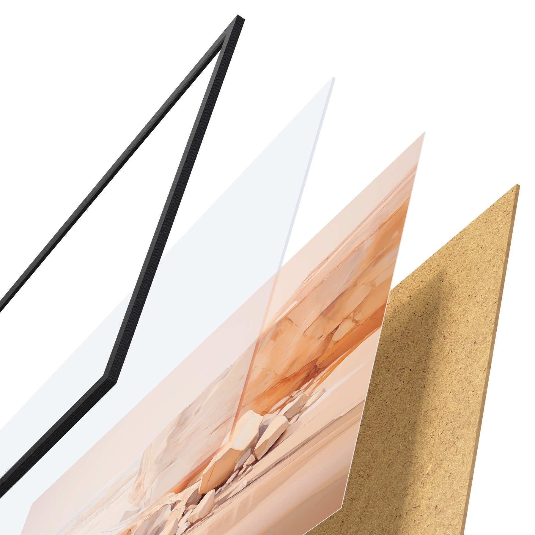Le poster se compose d'un cadre, d'un plexiglas, d'une image imprimée et d'un support en aggloméré. Le poster peut être immédiatement accroché au mur grâce aux fixations au dos.