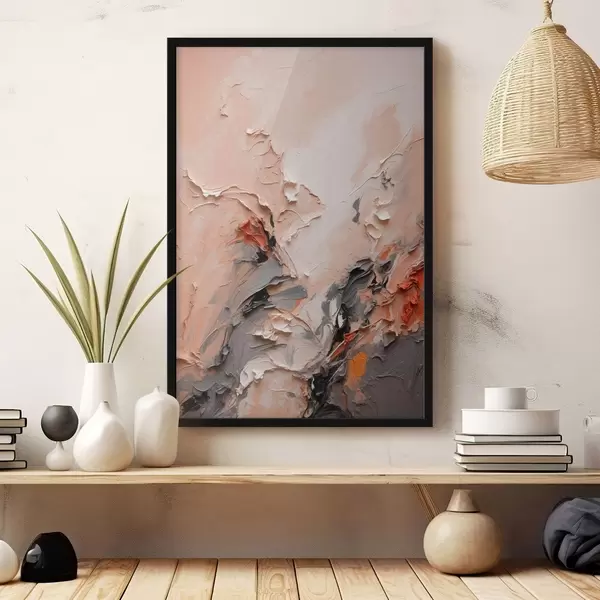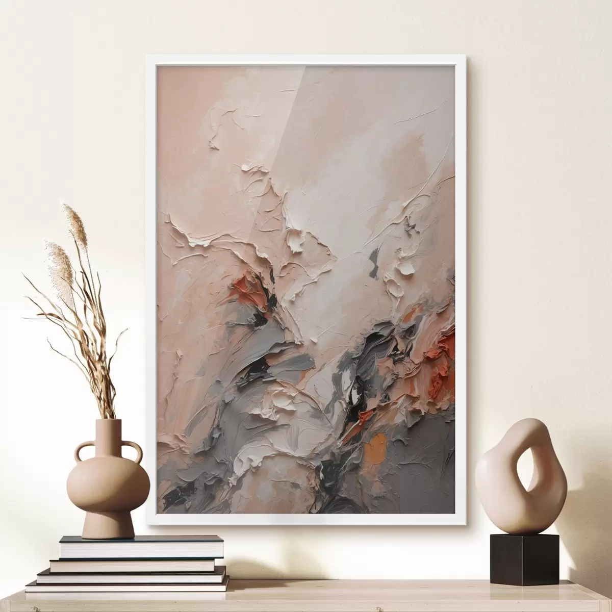 Affiche Abstrait dans les tons gris pêche avec des traits texturés f44873