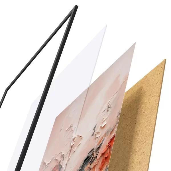 Le poster se compose d'un cadre, d'un plexiglas, d'une image imprimée et d'un support en aggloméré. Le poster peut être immédiatement accroché au mur grâce aux fixations au dos.