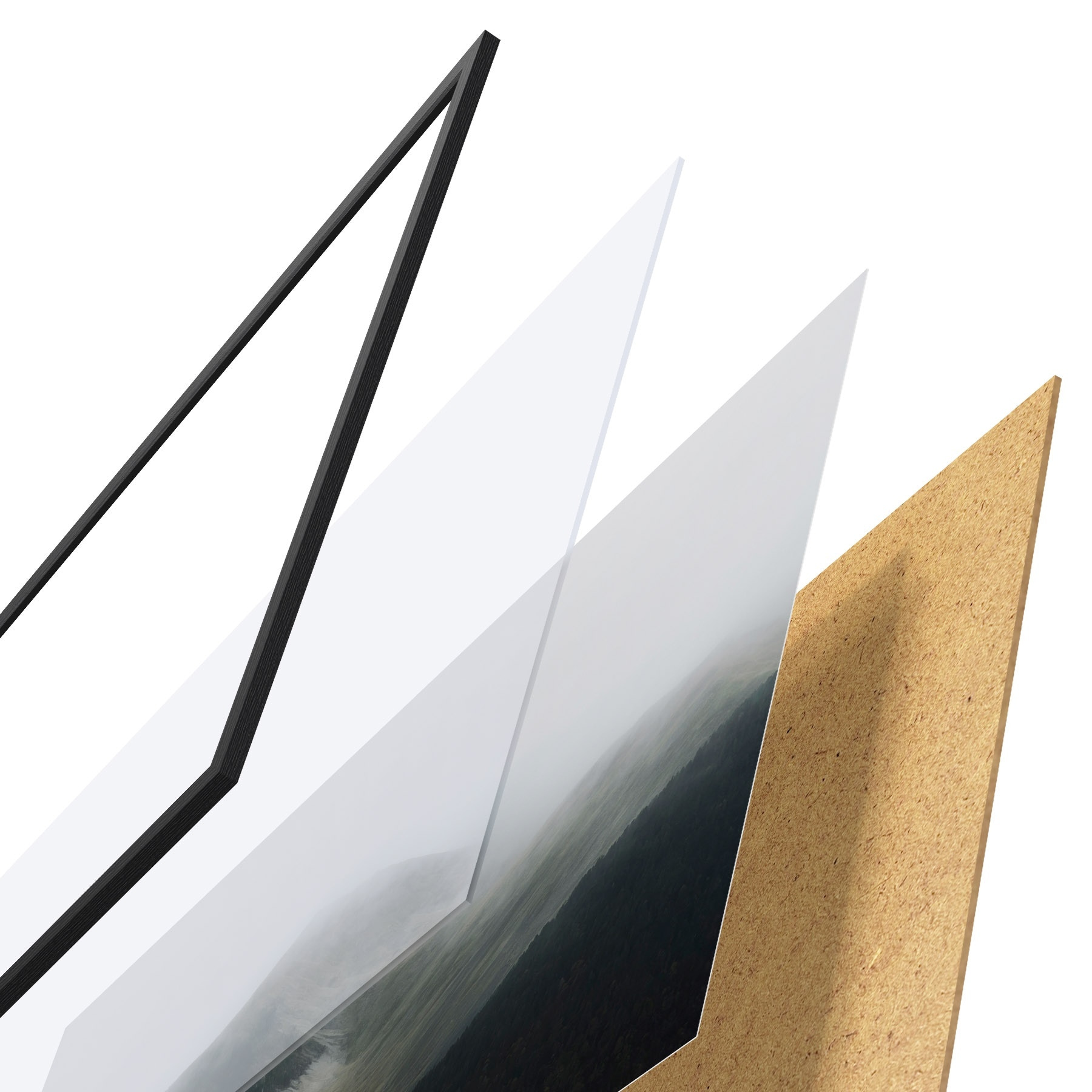 Le poster se compose d'un cadre, d'un plexiglas, d'une image imprimée et d'un support en aggloméré. Le poster peut être immédiatement accroché au mur grâce aux fixations au dos.