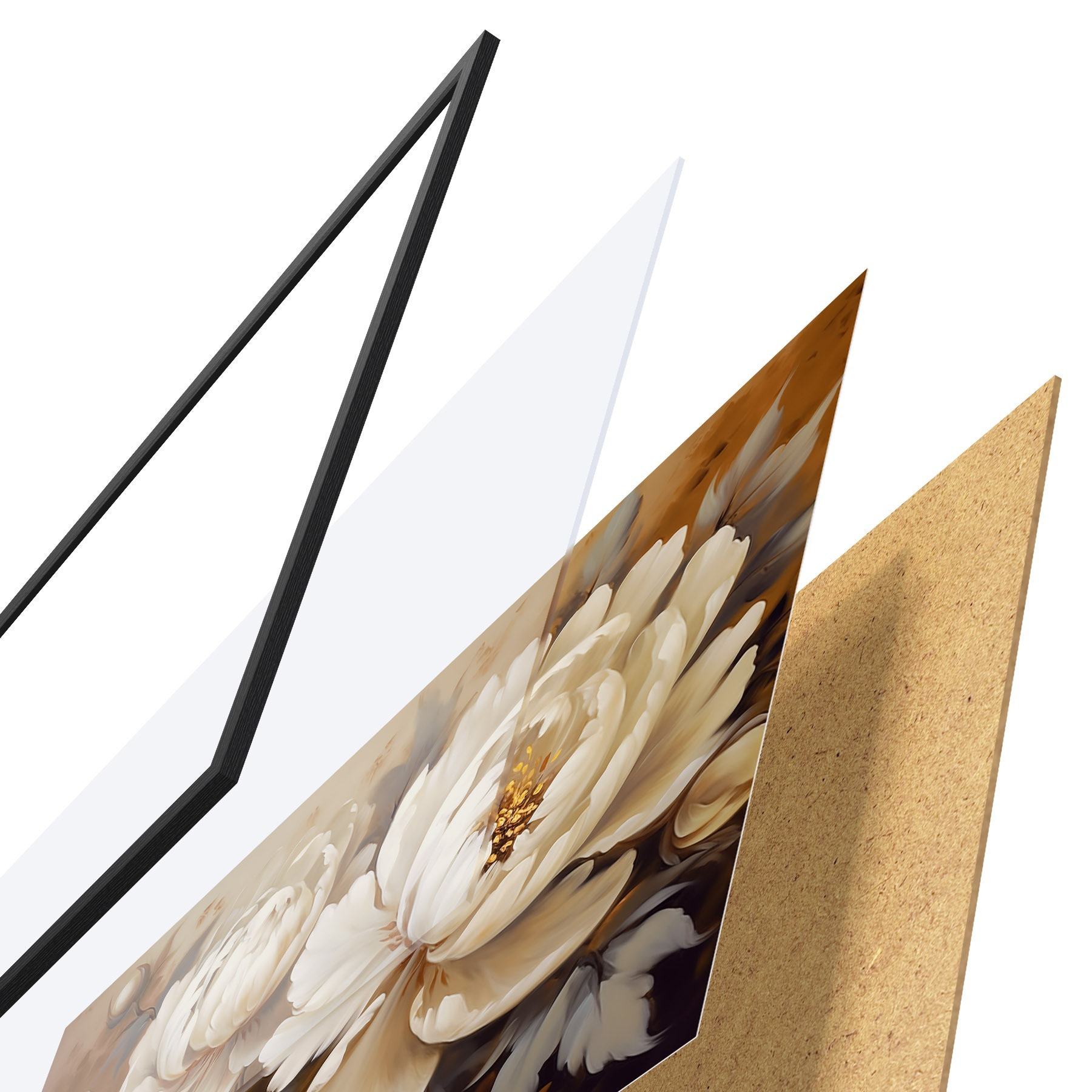 Le poster se compose d'un cadre, d'un plexiglas, d'une image imprimée et d'un support en aggloméré. Le poster peut être immédiatement accroché au mur grâce aux fixations au dos.