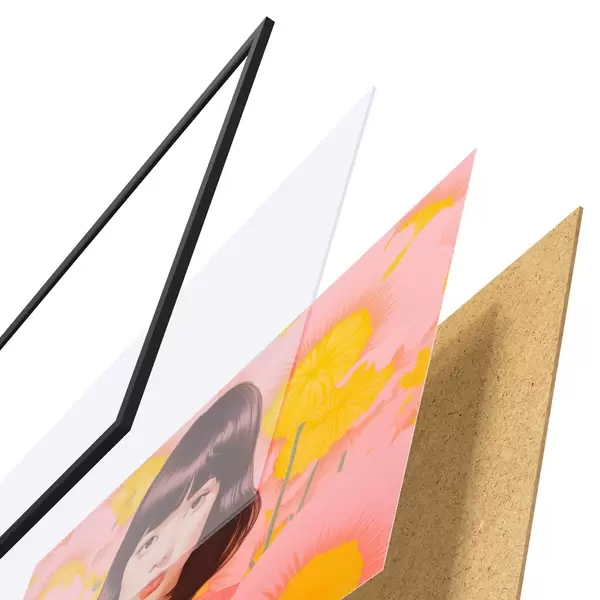 Le poster se compose d'un cadre, d'un plexiglas, d'une image imprimée et d'un support en aggloméré. Le poster peut être immédiatement accroché au mur grâce aux fixations au dos.