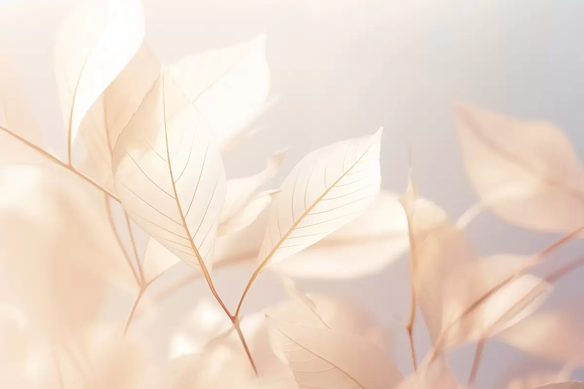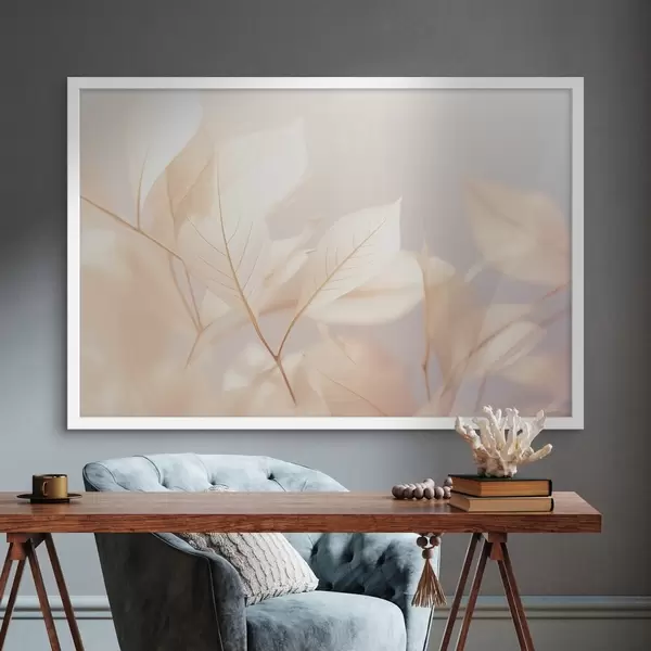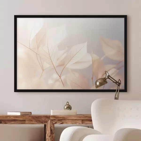 Affiche Feuilles translucides aux nervures complexes, palette de couleurs pastel douces, éclairage éthéré, composition minimaliste f44928