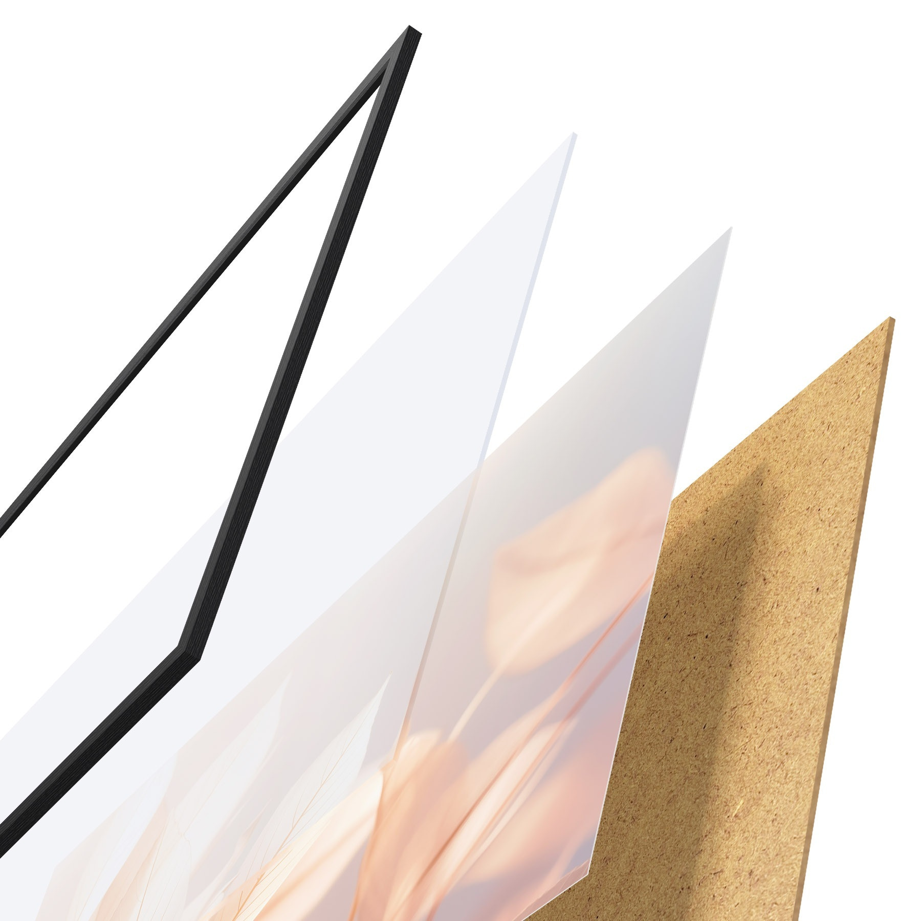 Le poster se compose d'un cadre, d'un plexiglas, d'une image imprimée et d'un support en aggloméré. Le poster peut être immédiatement accroché au mur grâce aux fixations au dos.