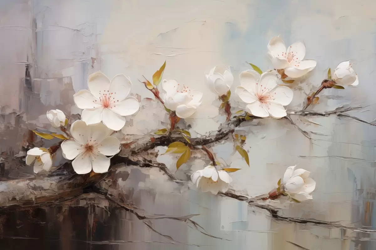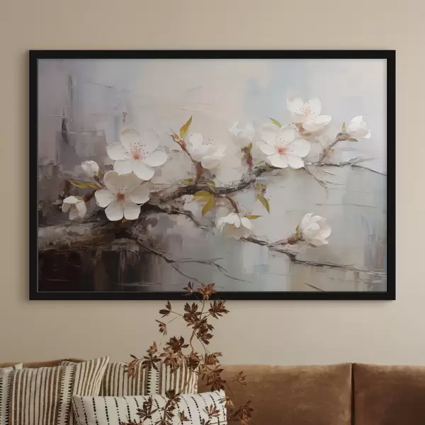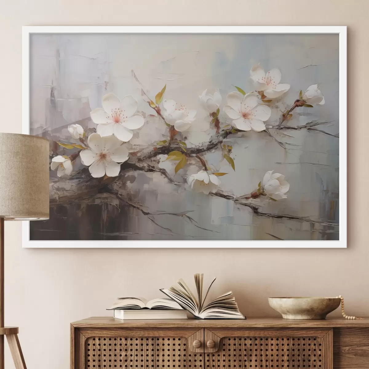Affiche Fleurs blanches avec des accents roses sur un fond abstrait Non f44935