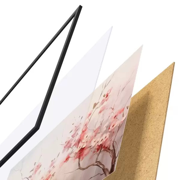 Le poster se compose d'un cadre, d'un plexiglas, d'une image imprimée et d'un support en aggloméré. Le poster peut être immédiatement accroché au mur grâce aux fixations au dos.