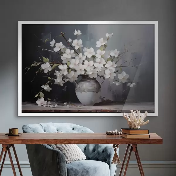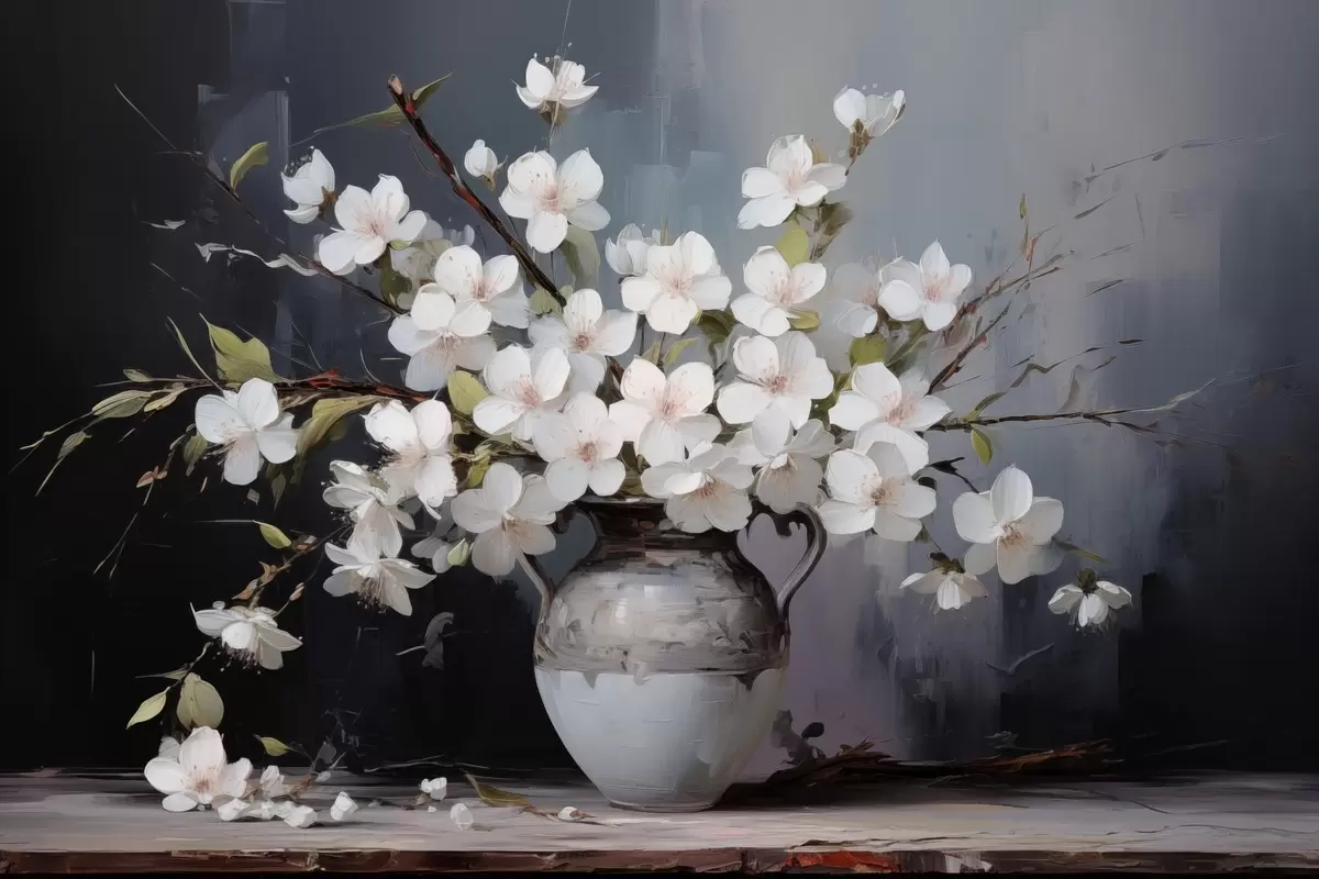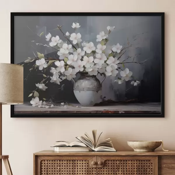 Affiche Branches fleuries dans un vase sur un fond sombre dans un style pittoresque f44949