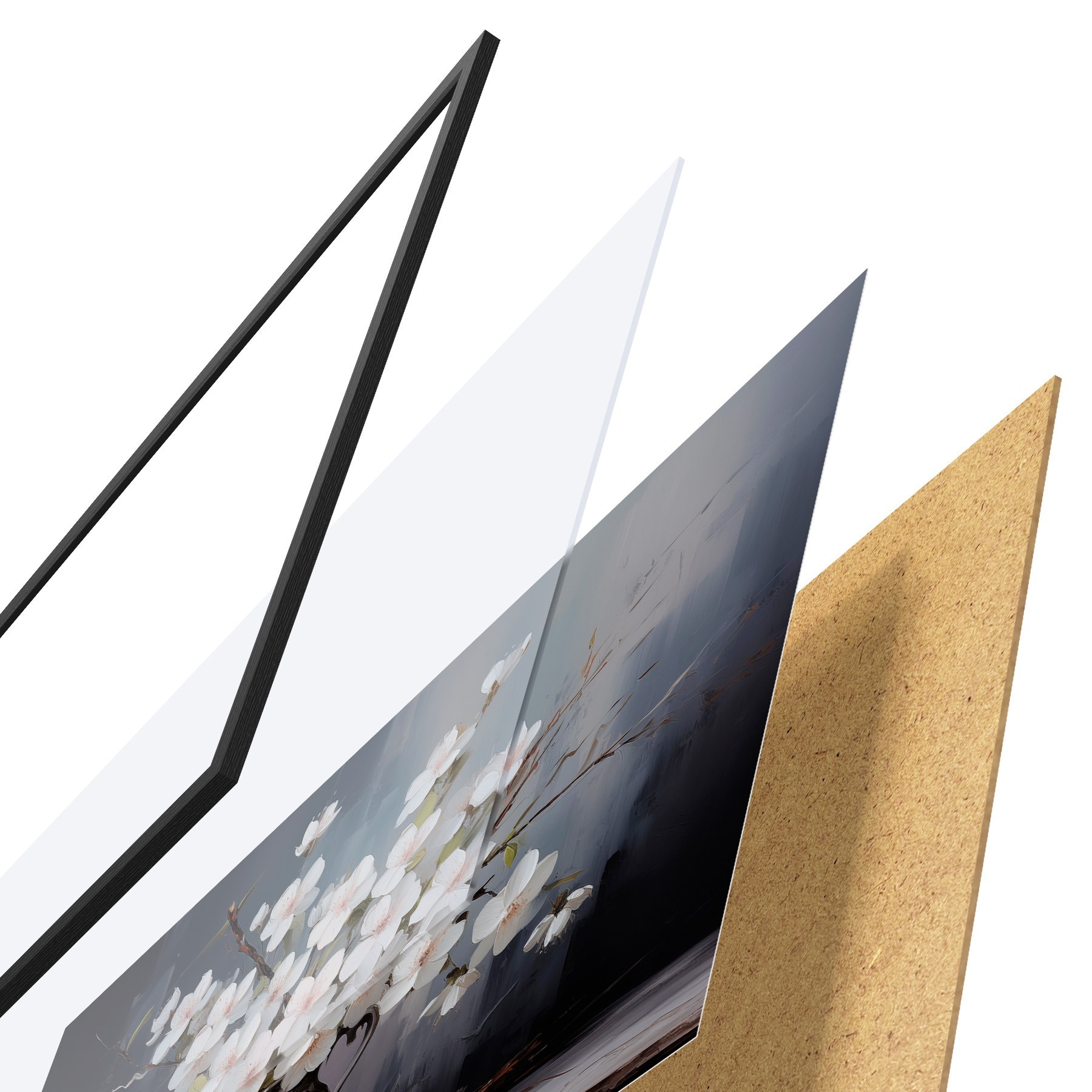 Le poster se compose d'un cadre, d'un plexiglas, d'une image imprimée et d'un support en aggloméré. Le poster peut être immédiatement accroché au mur grâce aux fixations au dos.