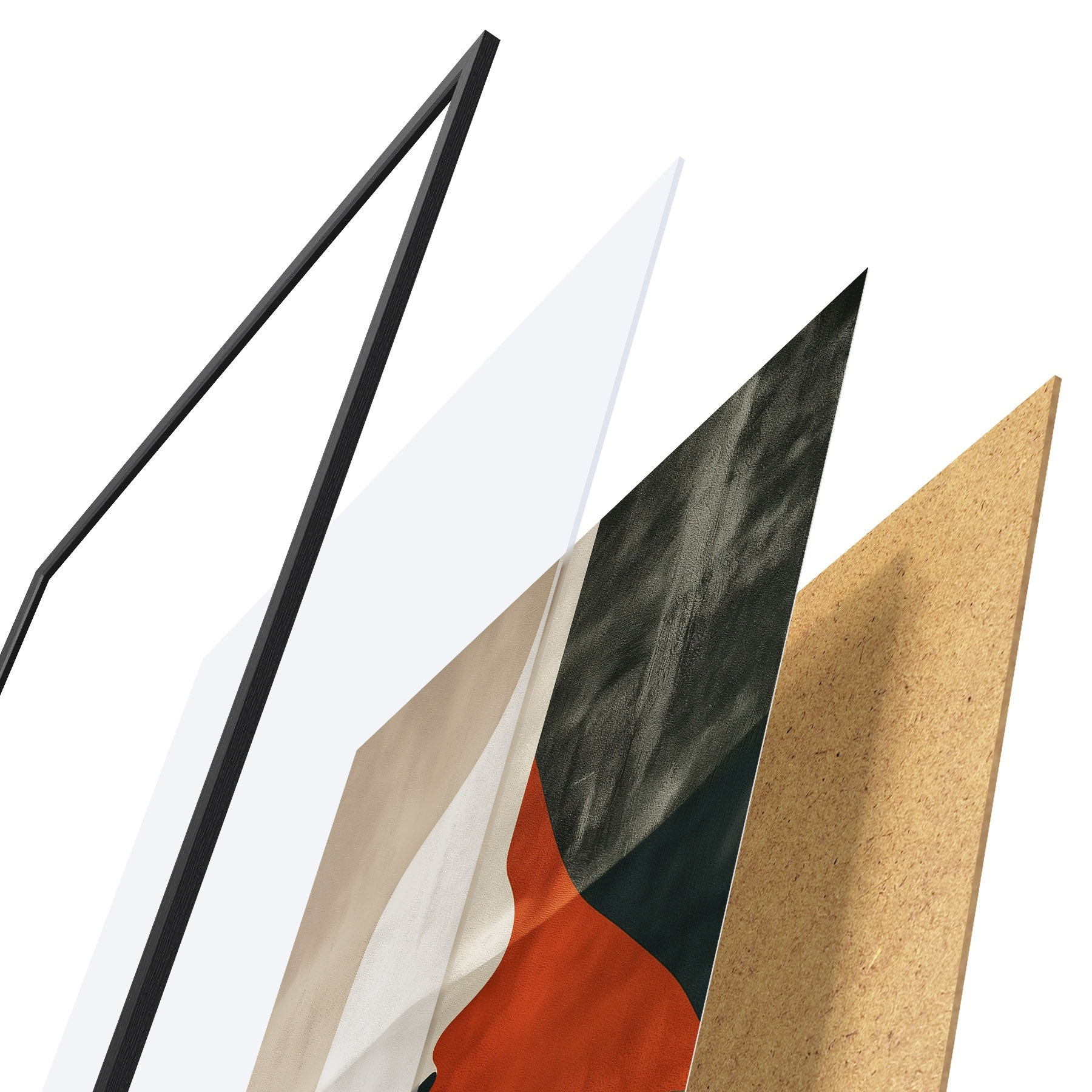 Le poster se compose d'un cadre, d'un plexiglas, d'une image imprimée et d'un support en aggloméré. Le poster peut être immédiatement accroché au mur grâce aux fixations au dos.