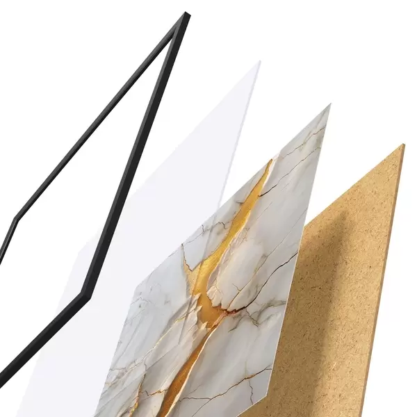 Le poster se compose d'un cadre, d'un plexiglas, d'une image imprimée et d'un support en aggloméré. Le poster peut être immédiatement accroché au mur grâce aux fixations au dos.