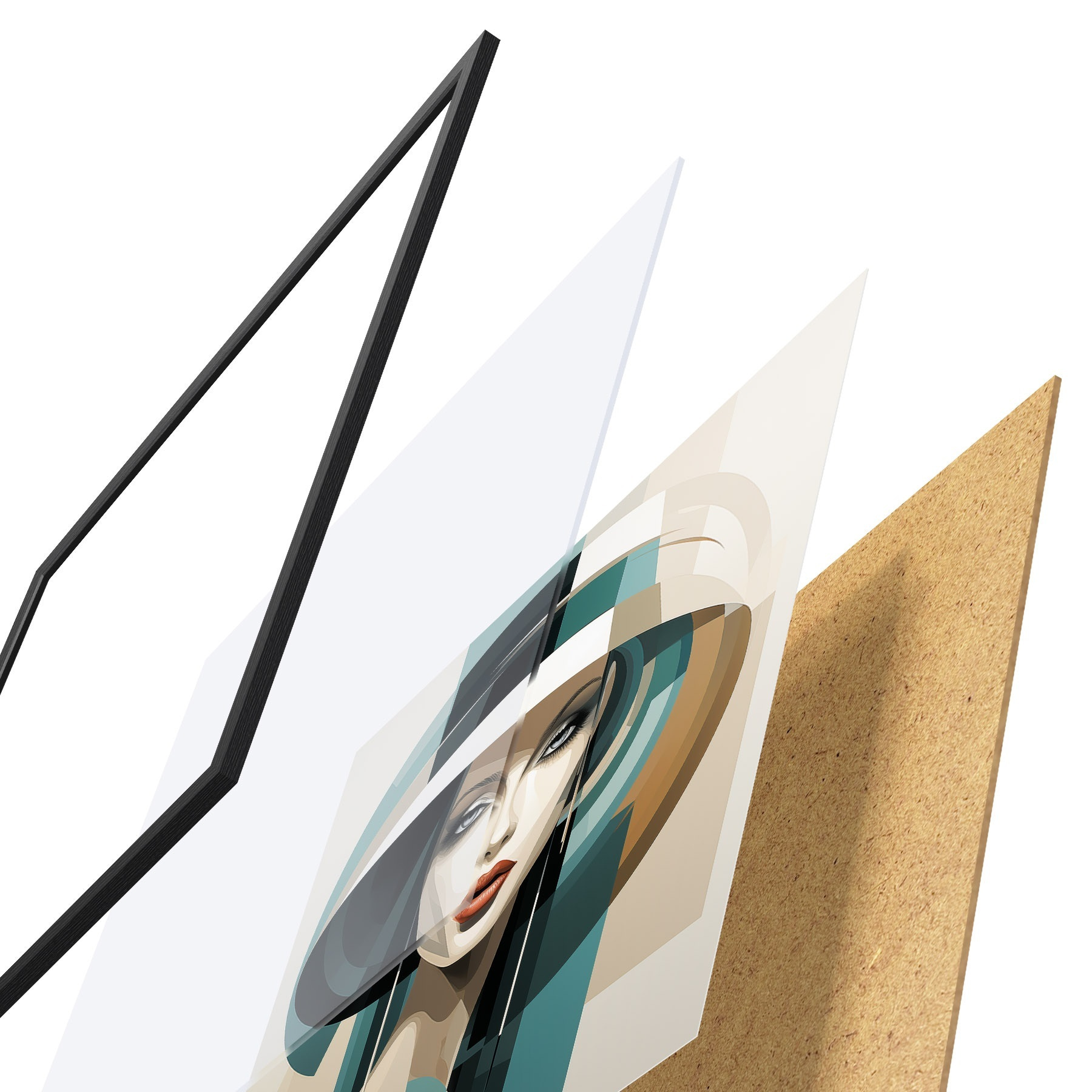 Le poster se compose d'un cadre, d'un plexiglas, d'une image imprimée et d'un support en aggloméré. Le poster peut être immédiatement accroché au mur grâce aux fixations au dos.