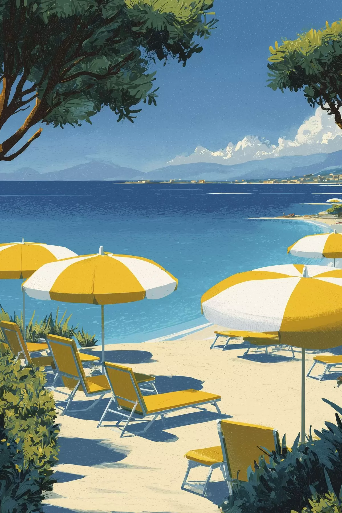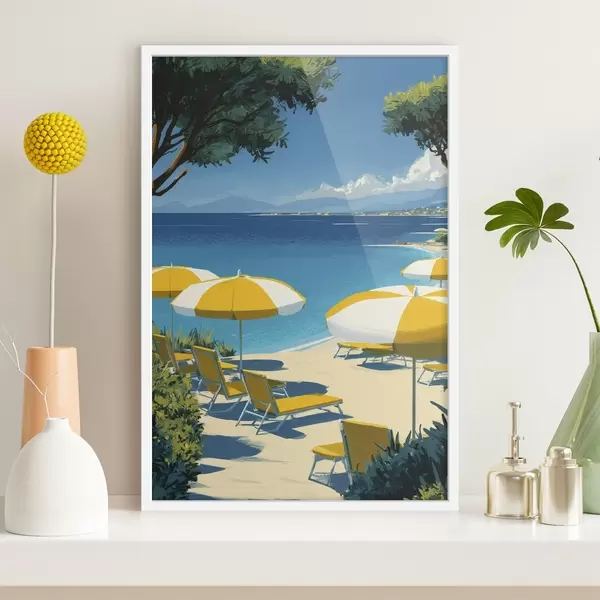 Affiche Plage d'été avec parasols et arbres Non f44974