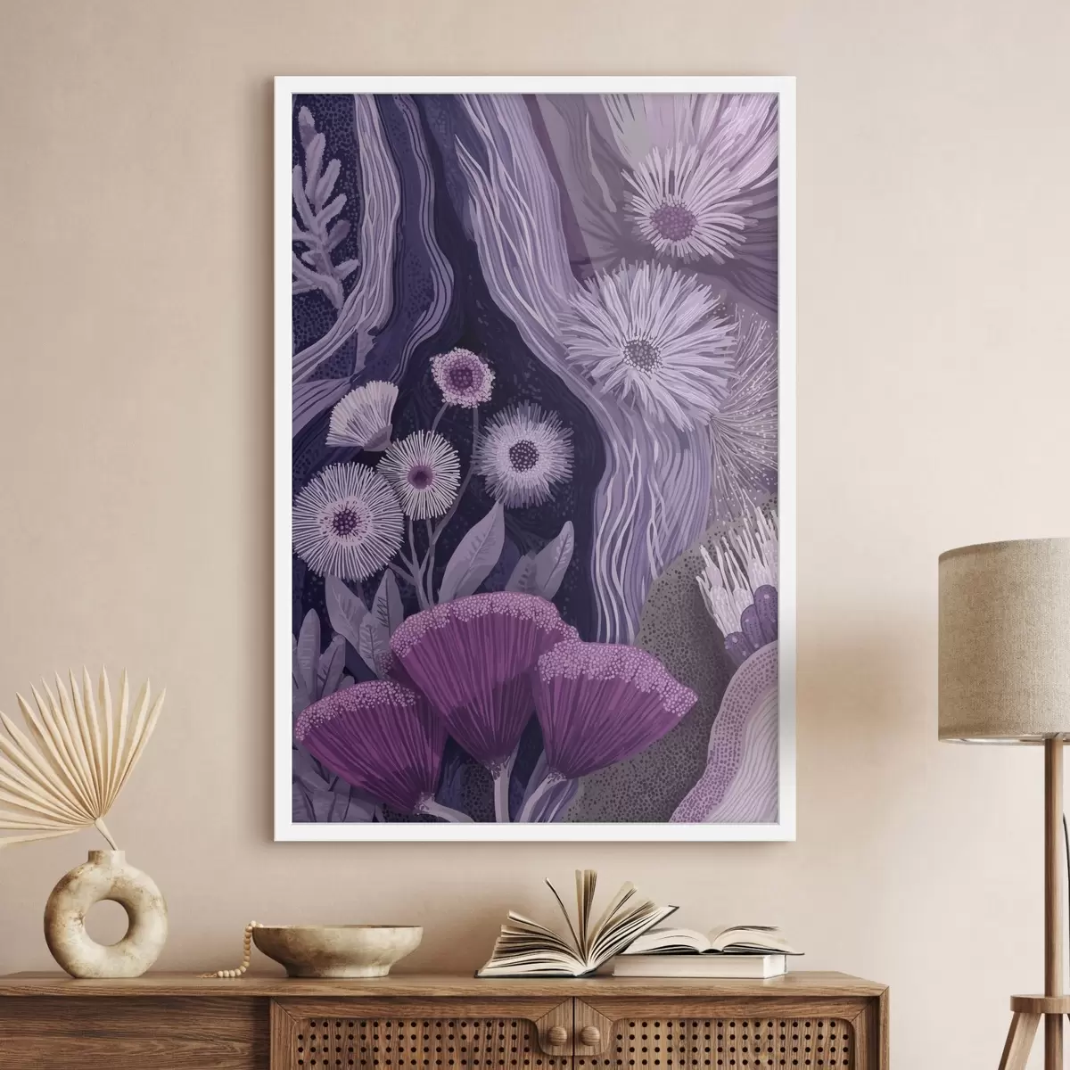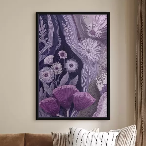 Affiche Motif floral dans des couleurs violettes, dessin détaillé Non f44984