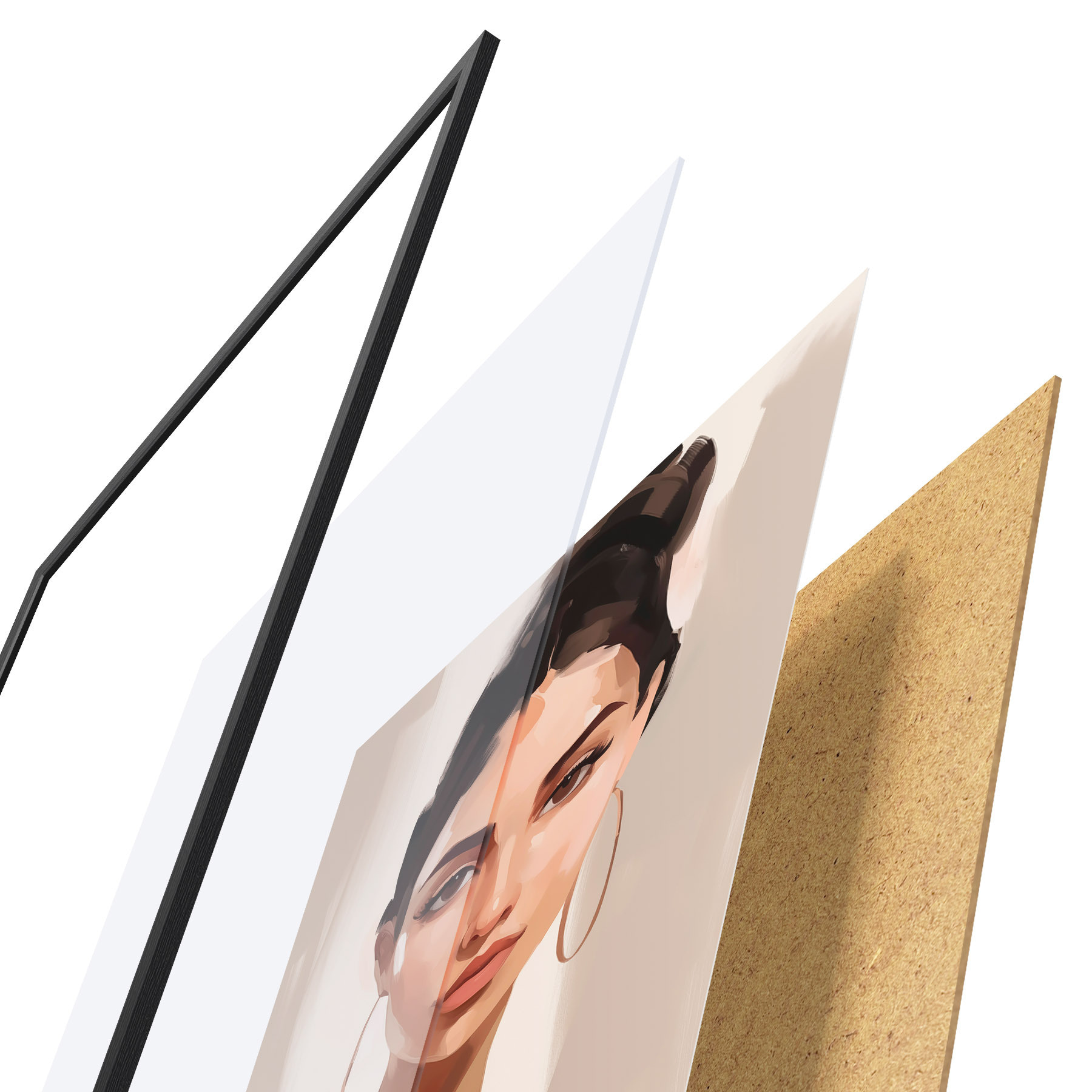 Le poster se compose d'un cadre, d'un plexiglas, d'une image imprimée et d'un support en aggloméré. Le poster peut être immédiatement accroché au mur grâce aux fixations au dos.