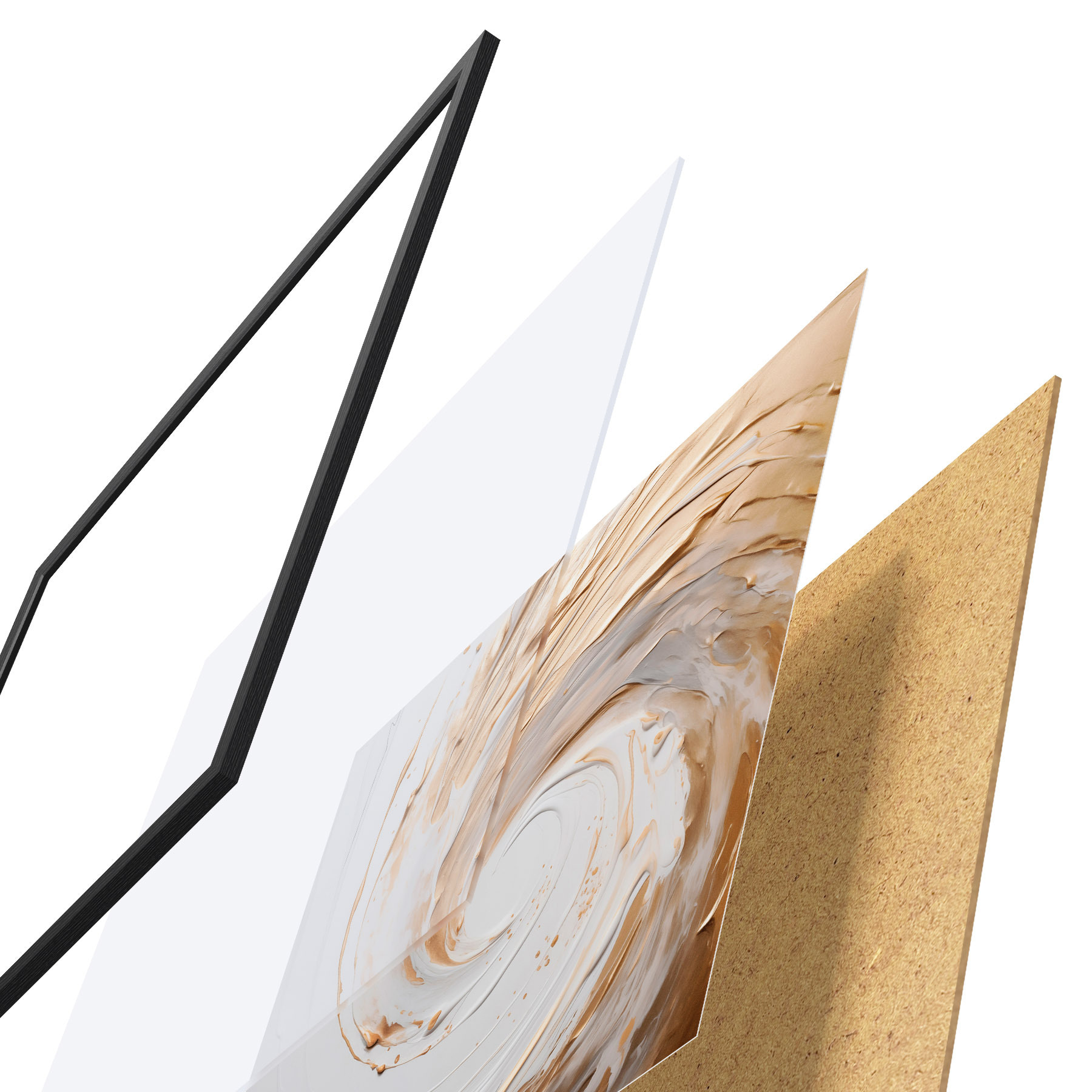 Le poster se compose d'un cadre, d'un plexiglas, d'une image imprimée et d'un support en aggloméré. Le poster peut être immédiatement accroché au mur grâce aux fixations au dos.