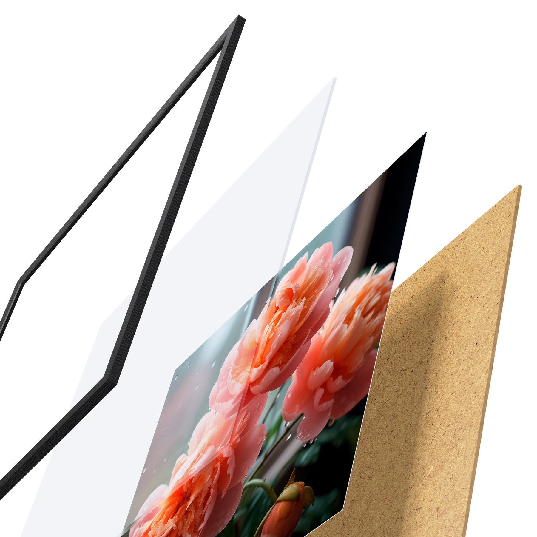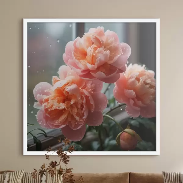 Affiche Trois pivoines avec la rosée dans la lumière du matin Non f45033