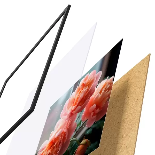 Le poster se compose d'un cadre, d'un plexiglas, d'une image imprimée et d'un support en aggloméré. Le poster peut être immédiatement accroché au mur grâce aux fixations au dos.